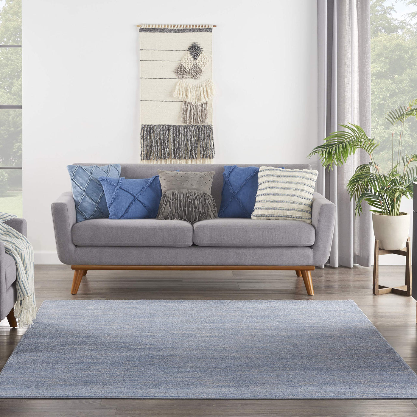 Busy, active lifestyles demand fuss-free décor, and this indoor/outdoor rug collection has it all. Nourison Essentials area rugs give you everything you want, and more! These handsome, solid color area rugs are crafted for rugged performance, but never sacrifice style for function. With low pile and serged edge, each Essentials rug is designed to withstand heavy traffic, including kids and pets. You’ll appreciate the durability, easy care, and soft texture of this contemporary rug collection in a wide range of decorator colors and sizes to fit every indoor/outdoor space. Ideal for your porch, patio, balcony, poolside and deck, or living room, dining room, family room and other gathering places. 100% polypropylene fibers can be vacuumed, hose-rinsed and air-dried. For even longer life, bring indoors during extreme weather. Here’s an indoor/outdoor area rug by Nourison Essentials that has it all. Enjoy rugged durability, easy care, and soft hand feel in a rug designed for the active lifestyle. This contemporary, borderless area rug in a subtle, marled blue-grey comes in a wide range of sizes to fit every indoor/outdoor space. Machine made with a low pile and serged edge, it will withstand heavy traffic without sacrificing comfort. An ideal choice for porch, patio, balcony, poolside and deck, or living room, dining room, family room and other gathering place around your home. This 100% polypropylene rug can be vacuumed, hose-rinsed and air-dried. To extend its life, bring it indoors during extreme weather.