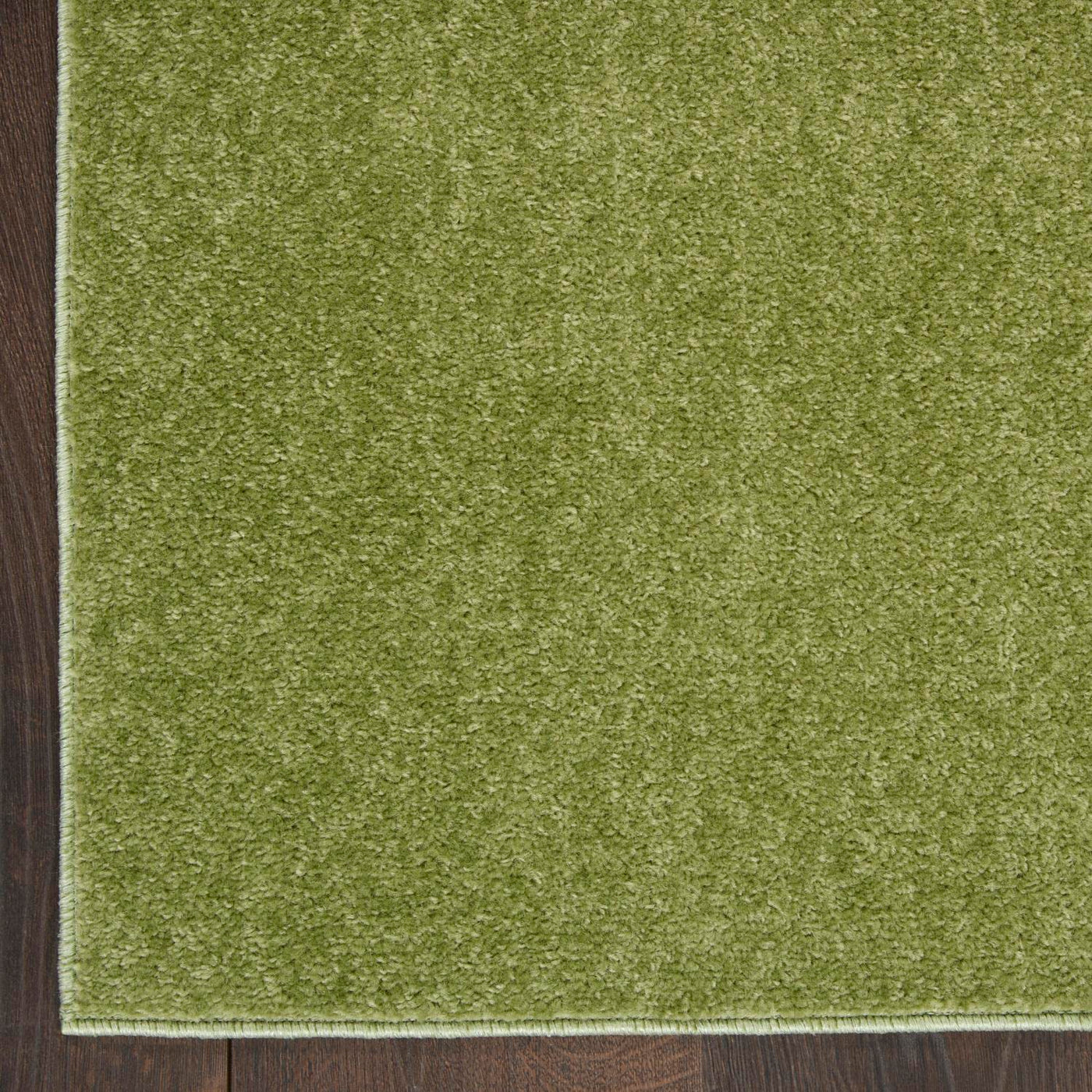 Busy, active lifestyles demand fuss-free décor, and this indoor/outdoor rug collection has it all. Nourison Essentials area rugs give you everything you want, and more! These handsome, solid color area rugs are crafted for rugged performance, but never sacrifice style for function. With low pile and serged edge, each Essentials rug is designed to withstand heavy traffic, including kids and pets. You’ll appreciate the durability, easy care, and soft texture of this contemporary rug collection in a wide range of decorator colors and sizes to fit every indoor/outdoor space. Ideal for your porch, patio, balcony, poolside and deck, or living room, dining room, family room and other gathering places. 100% polypropylene fibers can be vacuumed, hose-rinsed and air-dried. For even longer life, bring indoors during extreme weather. Here’s an indoor/outdoor area rug by Nourison Essentials that has it all. Enjoy rugged durability, easy care, and soft hand feel in a rug designed for the active lifestyle. This contemporary, borderless area rug in soft, mossy green comes in a wide range of sizes to fit every indoor/outdoor space. Machine made with a low pile and serged edge, it will withstand heavy traffic without sacrificing comfort. An ideal choice for porch, patio, balcony, poolside and deck, or living room, dining room, family room and other gathering place around your home. This 100% polypropylene rug can be vacuumed, hose-rinsed and air-dried. To extend its life, bring it indoors during extreme weather.
