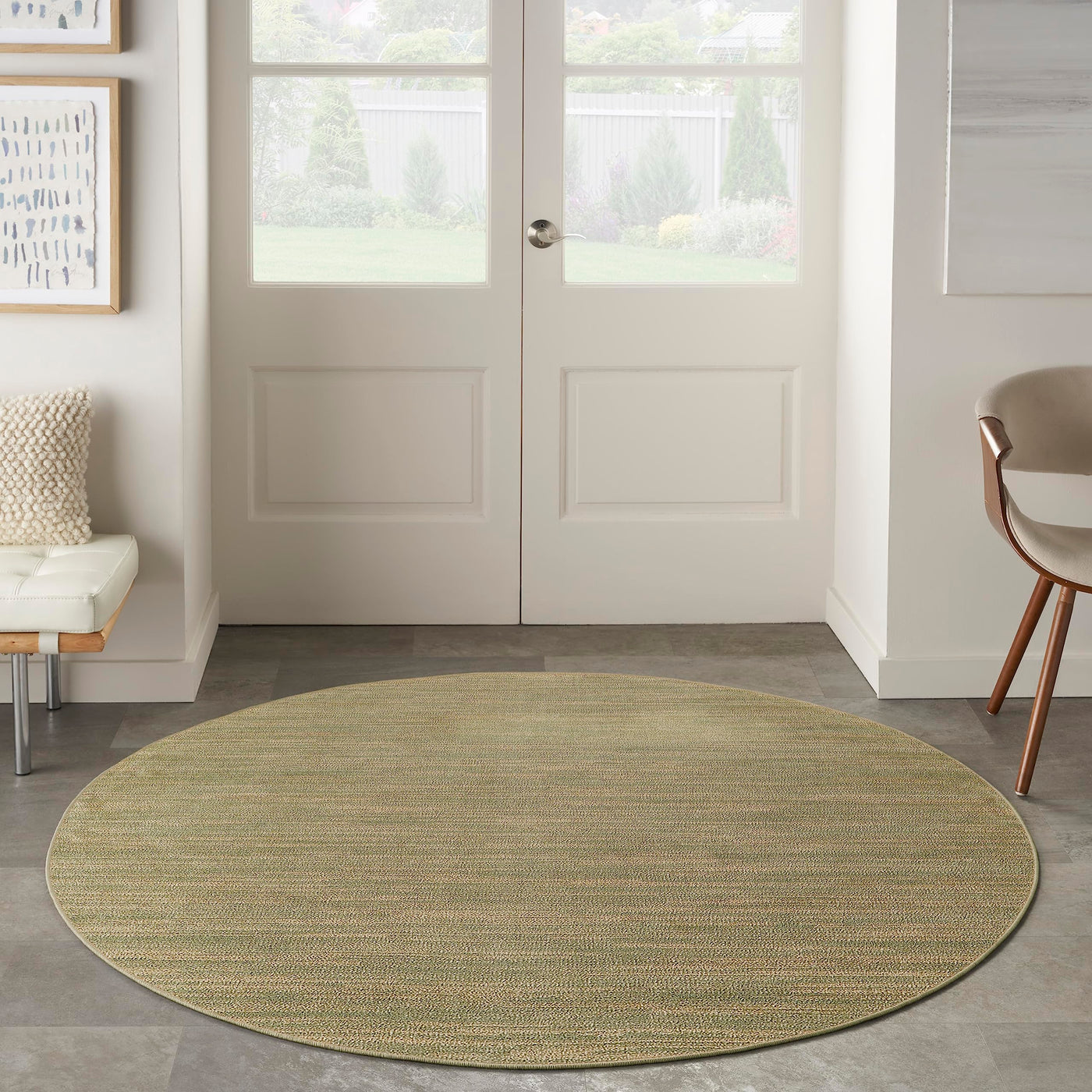 Nourison Essentials Indoor/Outdoor Green Gold 8' X Round Area Rug, Easy Cleaning, Non Shedding, Bed Room, Living Room, Dining Room, Backyard, Deck, Patio (8 Round)