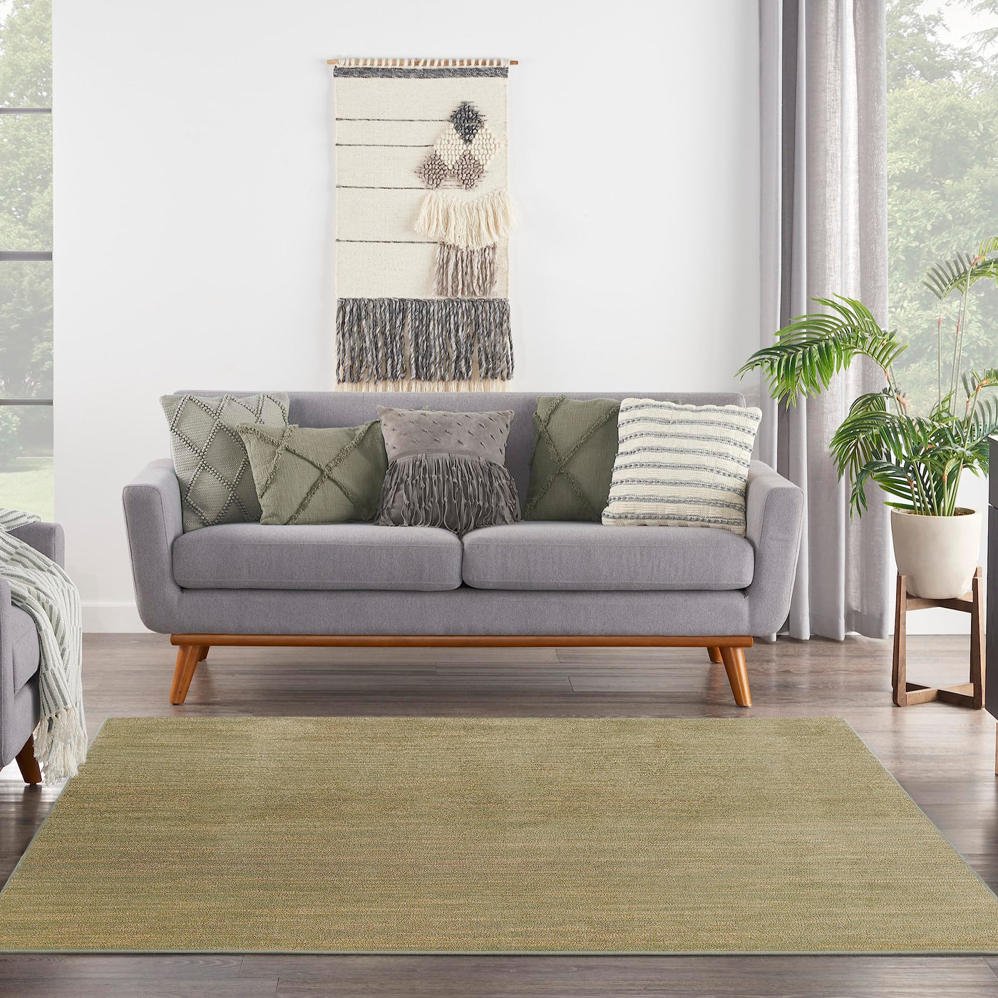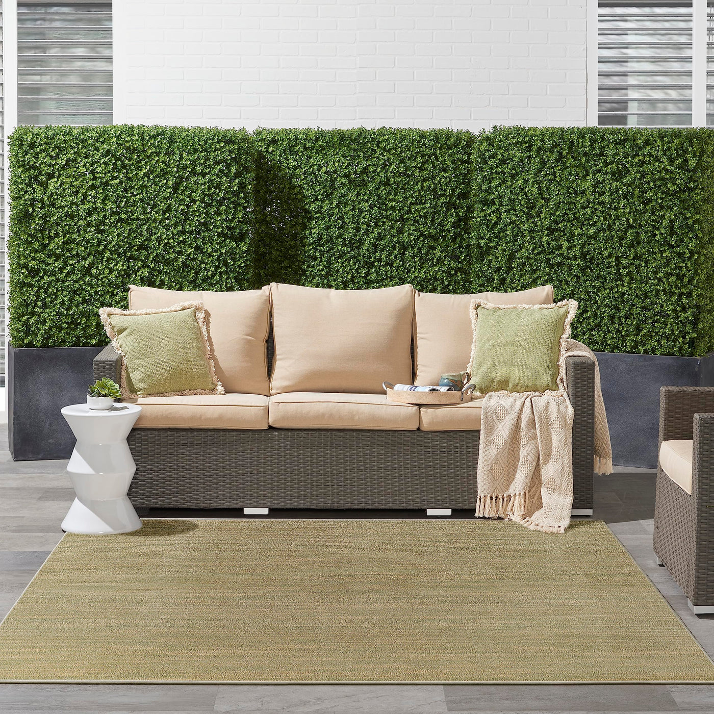 Busy, active lifestyles demand fuss-free décor, and this outdoor rug collection has it all. Nourison Essentials area rugs give you everything you want, and more! These handsome, solid color and patterned area rugs are crafted for rugged performance, but never sacrifice style for function. With a low cut pile, each Essentials rug is designed to withstand heavy traffic, including kids and pets. You'll appreciate the durability, easy care, and soft texture of this contemporary rug collection in a wide range of colors and sizes to fit every indoor and outdoor space. Ideal for your porch, patio, balcony, poolside and deck, or living room, dining room, and other gathering places. 100% polypropylene fibers can be vacuumed, hose-rinsed and air-dried. For even longer life, bring indoors during extreme weather. Designed for busy, active lifestyles, this green and gold outdoor rug from the Nourison Essentials Collection is the ideal pairing of style and practicality. The simple, solid pattern is enhanced with subtle tonal variations and a surprisingly soft texture that’s equally suitable for any room inside the home. Place in any room as a standalone foundation for your décor or use as part of a layered rug look. Machine-made with a low-profile construction from easy to clean polypropylene yarns, this modern rug easily withstands heavy traffic, does not shed, and can be vacuumed or hose rinsed.