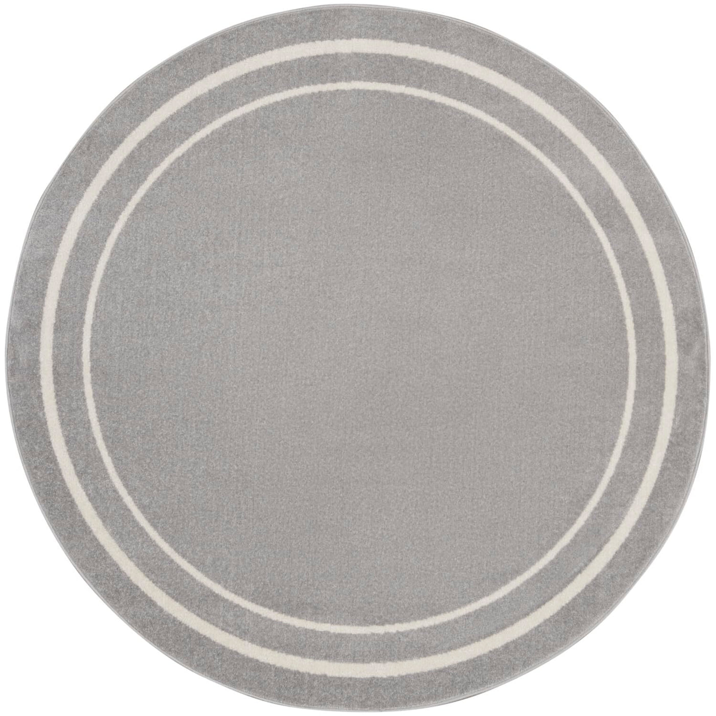 Nourison Essentials Indoor/Outdoor Grey/Ivory 8' X Round Area -Rug, Easy -Cleaning, Non Shedding, Bed Room, Living Room, Dining