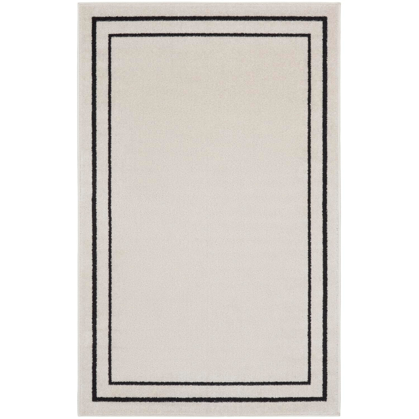 Nourison Essentials Indoor/Outdoor Ivory/Black 2' X 4' Area -Rug, Easy -Cleaning, Non Shedding, Bed Room, Living Room, Dining Ro