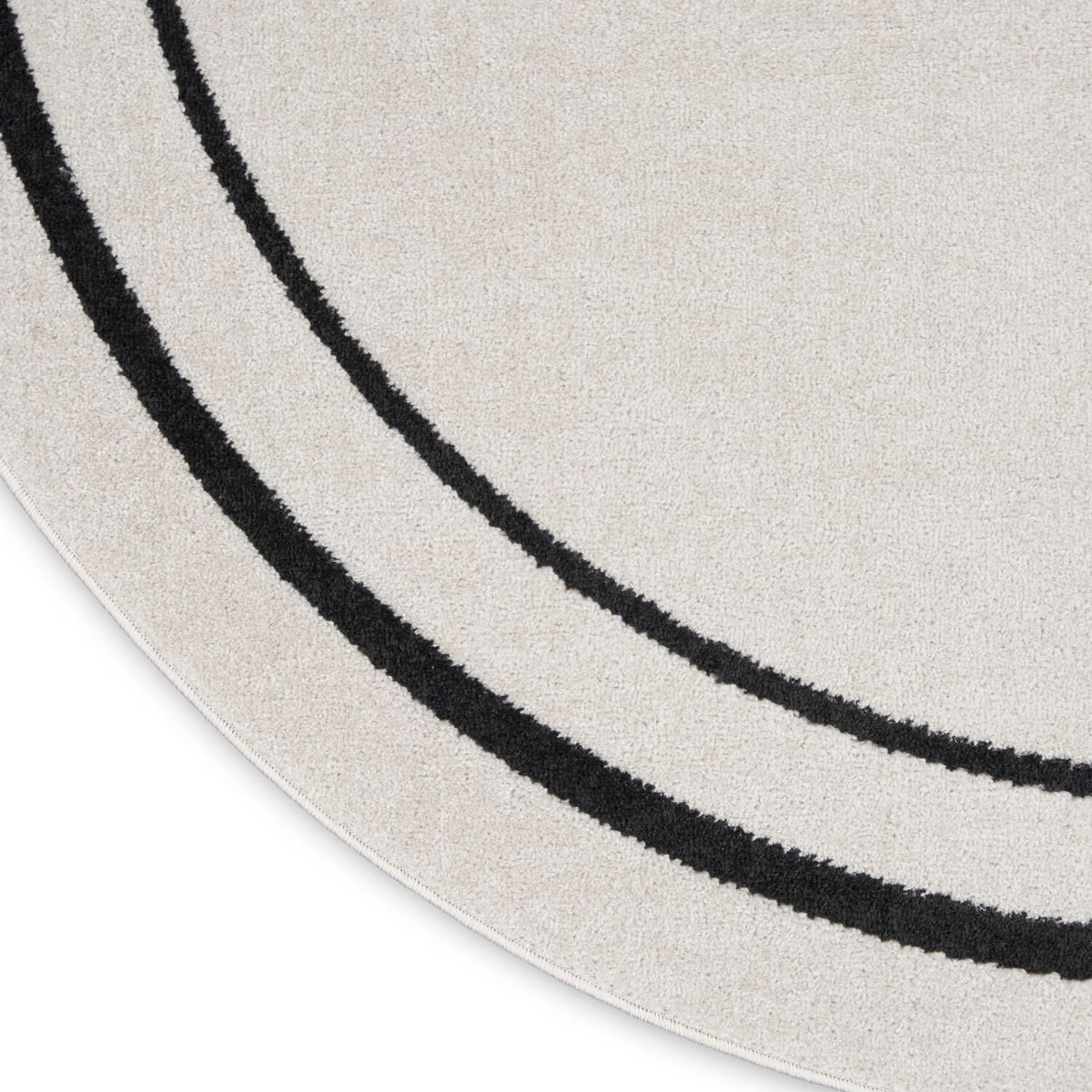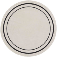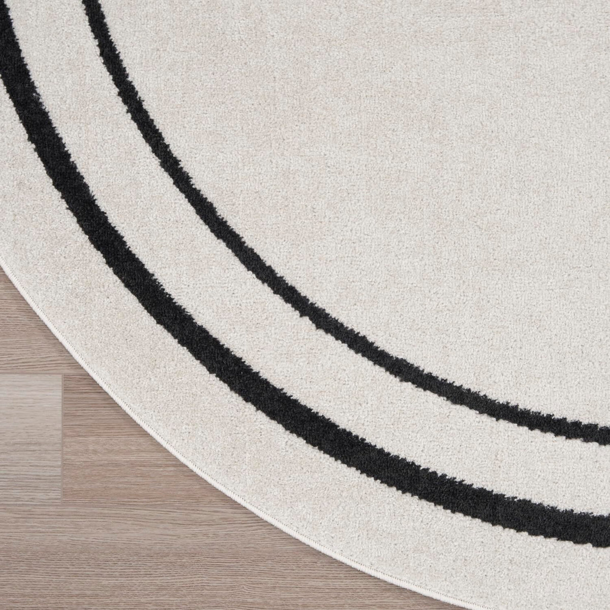 Nourison Essentials Indoor/Outdoor Ivory/Black 8' X Round Area -Rug, Easy -Cleaning, Non Shedding, Bed Room, Living Room, Dining