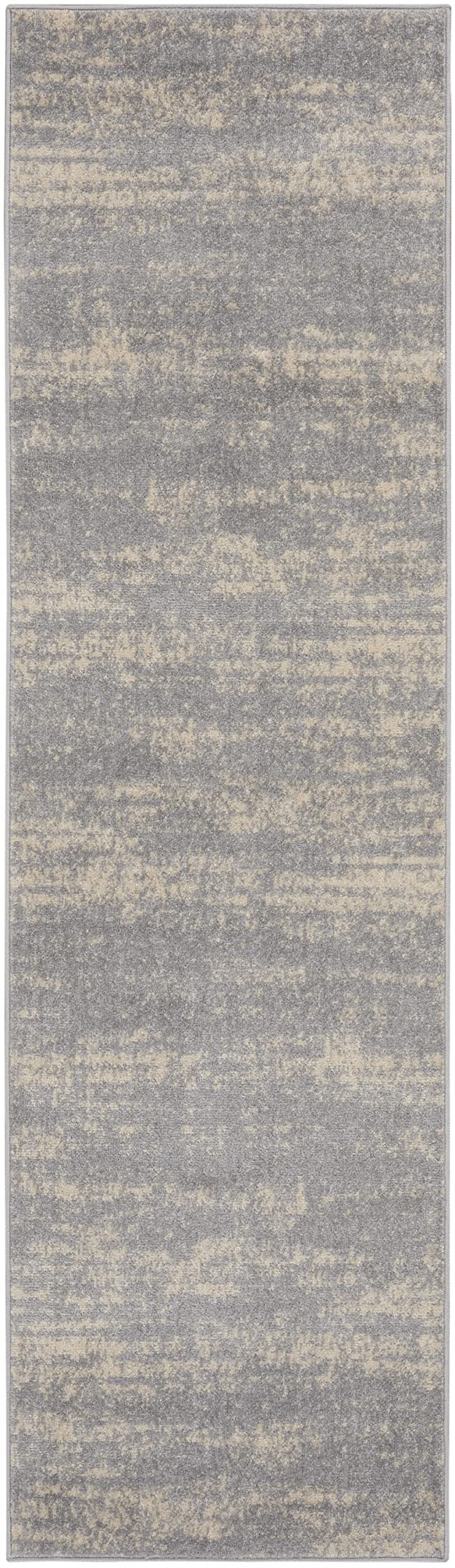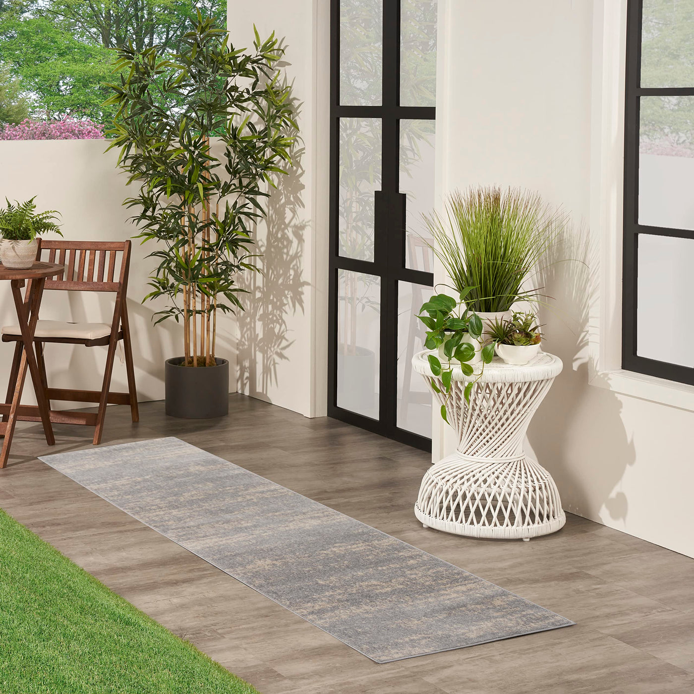 Nourison Essentials Indoor/Outdoor Solid Abstract Grey/Beige 2' X 6' Area Rug, Easy Cleaning, Non Shedding, Bed Room, Living Room, Dining Room, Backyard, Deck, Patio (2X6)