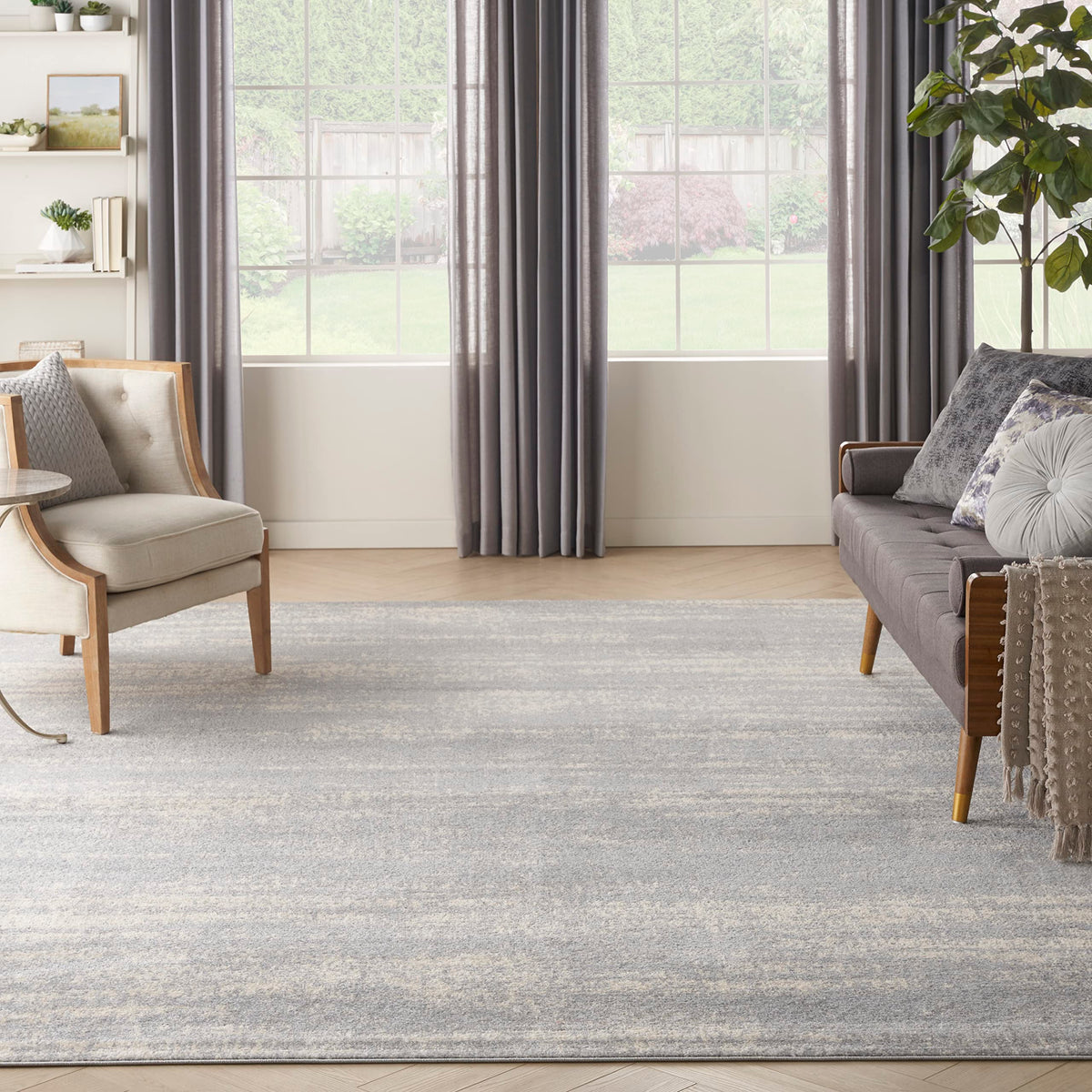 Nourison Essentials Indoor/Outdoor Solid Abstract Grey/Beige 8' X 10' Area Rug, Easy Cleaning, Non Shedding, Bed Room, Living Room, Dining Room, Backyard, Deck, Patio (8X10)