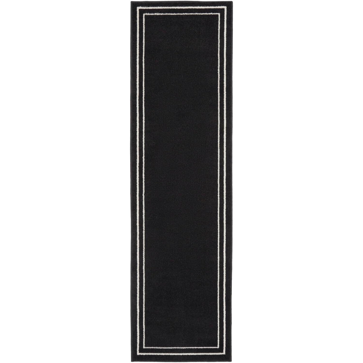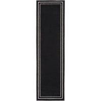 Nourison Essentials Indoor/Outdoor Solid Bordered Black Ivory 2'2' X 7'6 Area Rug, Easy Cleaning, Non Shedding, Bed Room, Livin