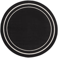 Nourison Essentials Indoor/Outdoor Solid Bordered Black Ivory 4' X Round Area Rug, Easy Cleaning, Non Shedding, Bed Room, Living