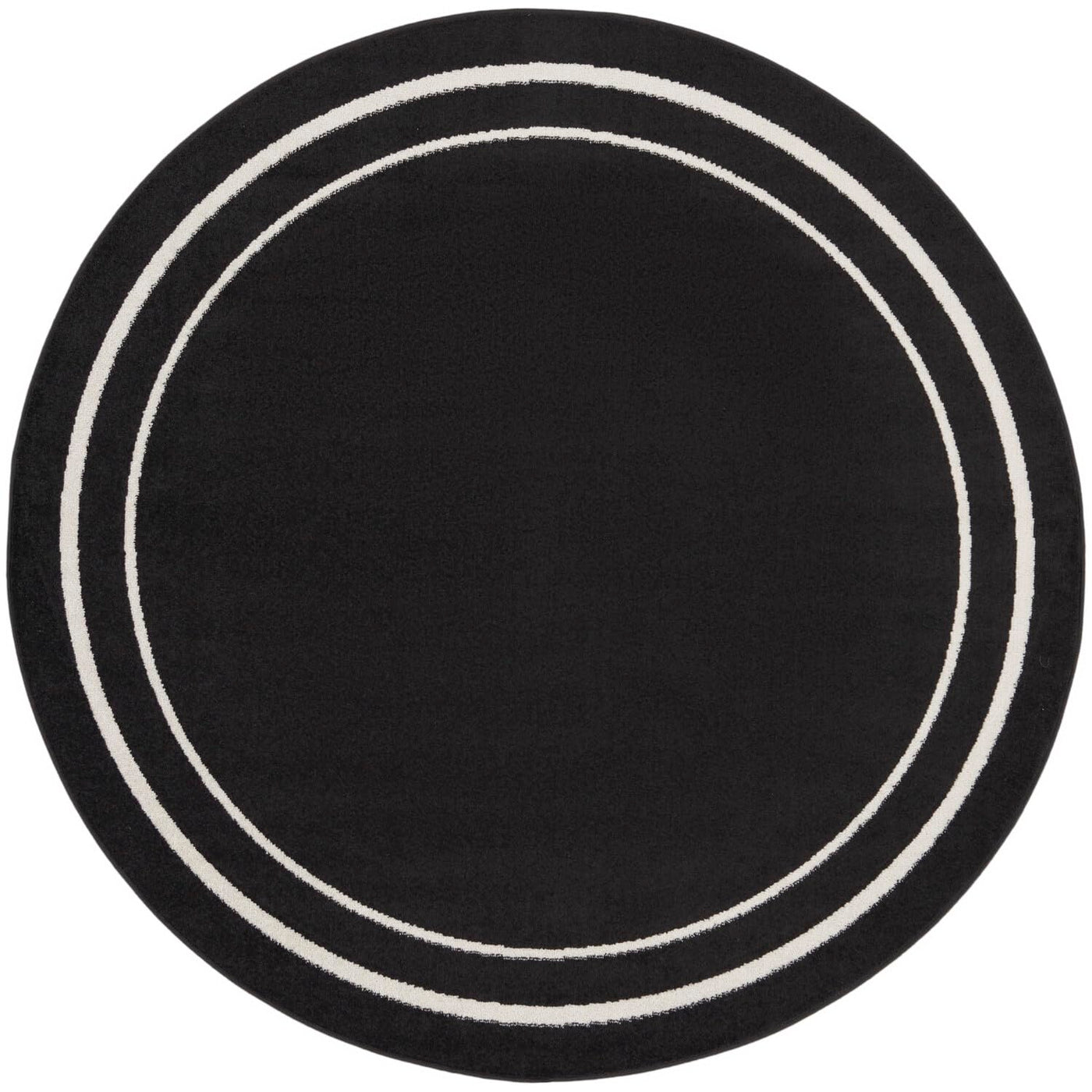 Nourison Essentials Indoor/Outdoor Solid Bordered Black Ivory 6' X Round Area Rug, Easy Cleaning, Non Shedding, Bed Room, Living