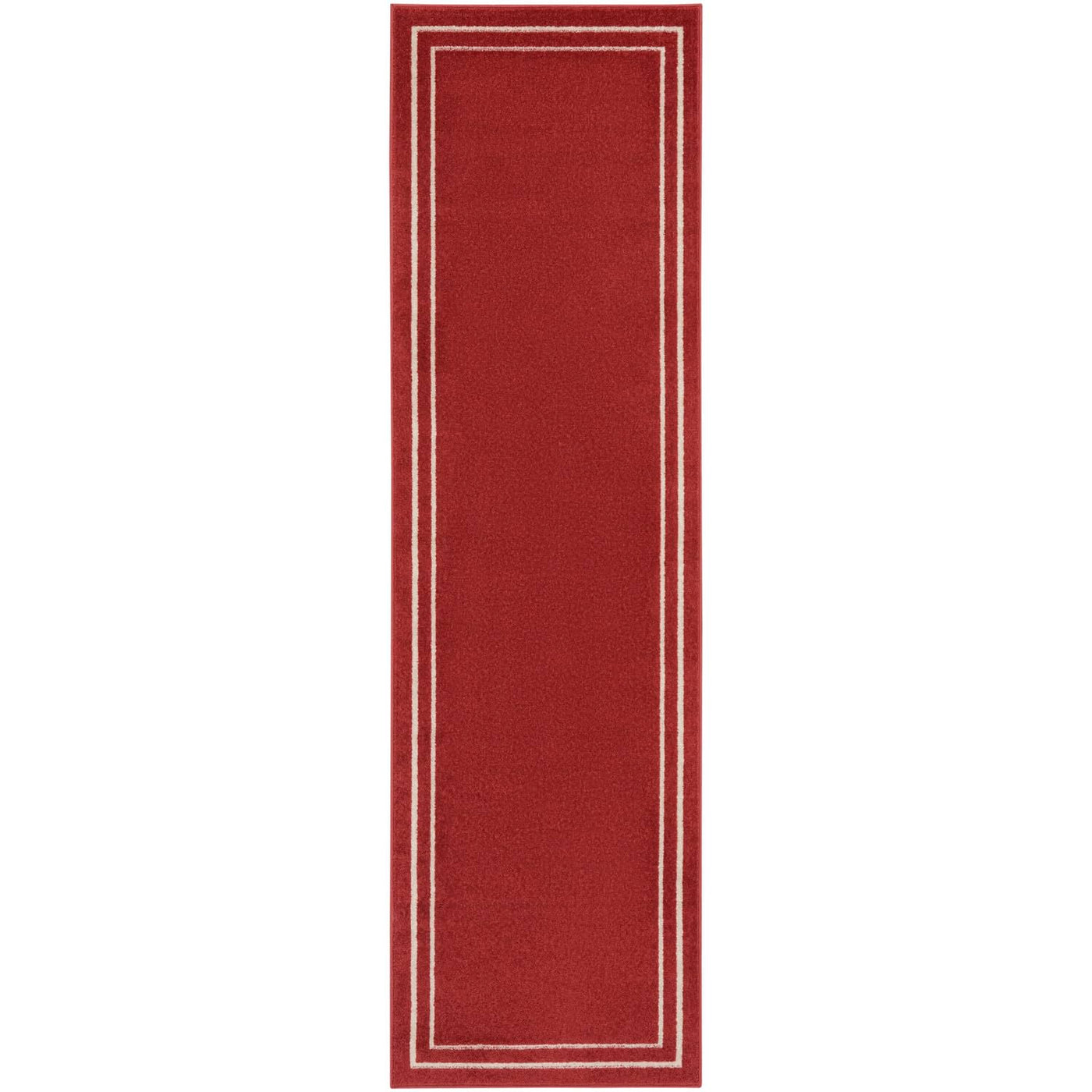 Nourison Essentials Indoor/Outdoor Solid Bordered Brick/Ivory 2'2' X 7'6 Area Rug, Easy Cleaning, Non Shedding, Bed Room, Livin