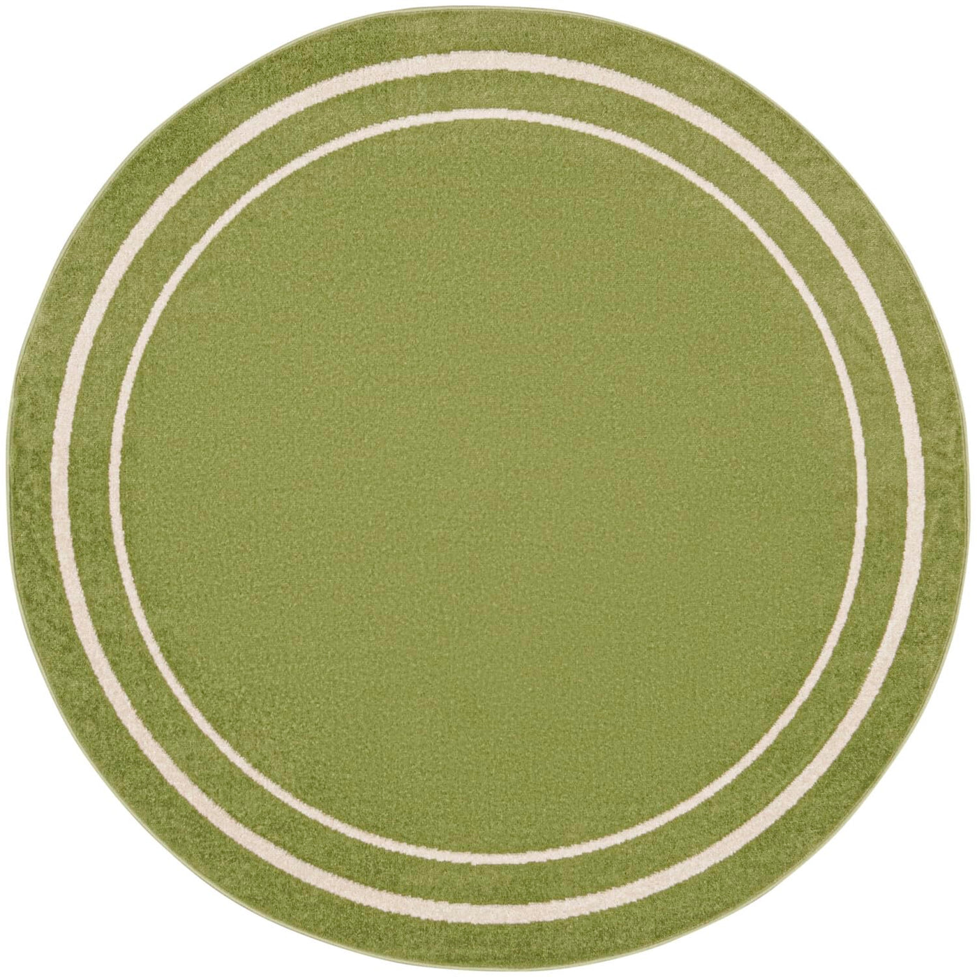 Nourison Essentials Indoor/Outdoor Solid Bordered Green Ivory 8' X Round Area Rug, Easy Cleaning, Non Shedding, Bed Room, Living