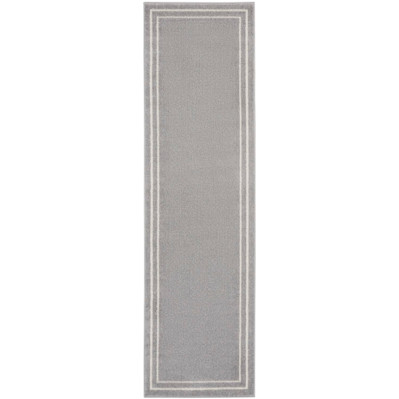 Nourison Essentials Indoor/Outdoor Solid Bordered Grey/Ivory 2'2' X 7'6 Area Rug, Easy Cleaning, Non Shedding, Bed Room, Living