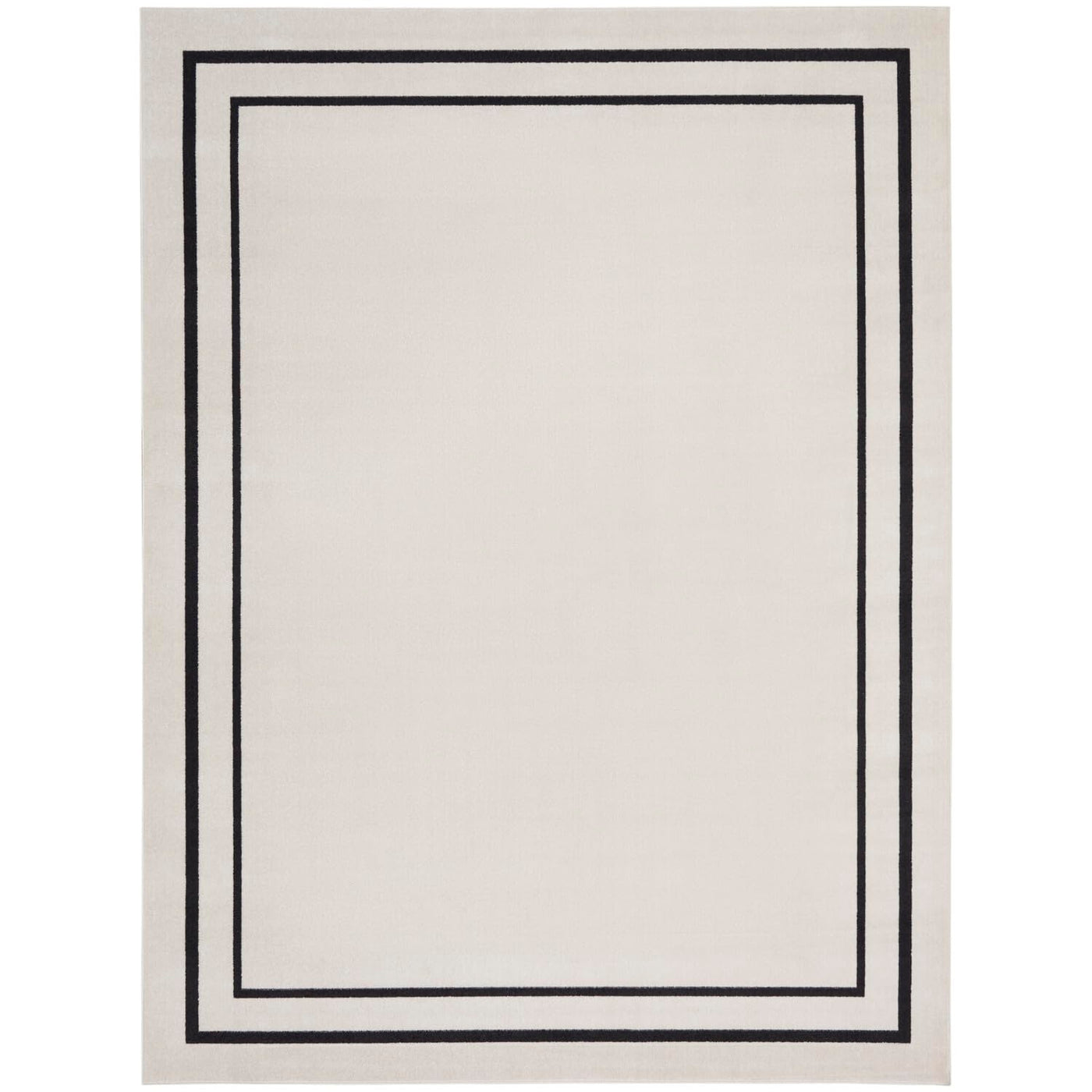 Nourison Essentials Indoor/Outdoor Solid Bordered Ivory/Black 8' X 10' Area Rug, Easy Cleaning, Non Shedding, Bed Room, Living R
