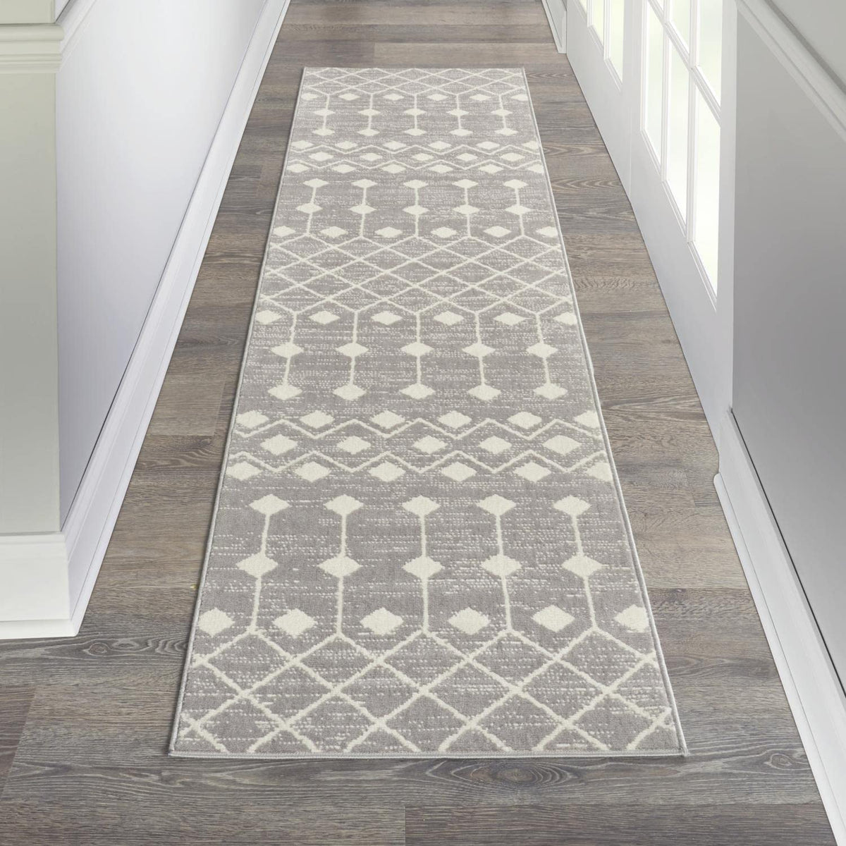 Nourison Grafix Moroccan Grey 2'3' X 12' Area Rug, Easy Cleaning, Non Shedding, Bed Room, Living Room, Dining Room, Kitchen (2X