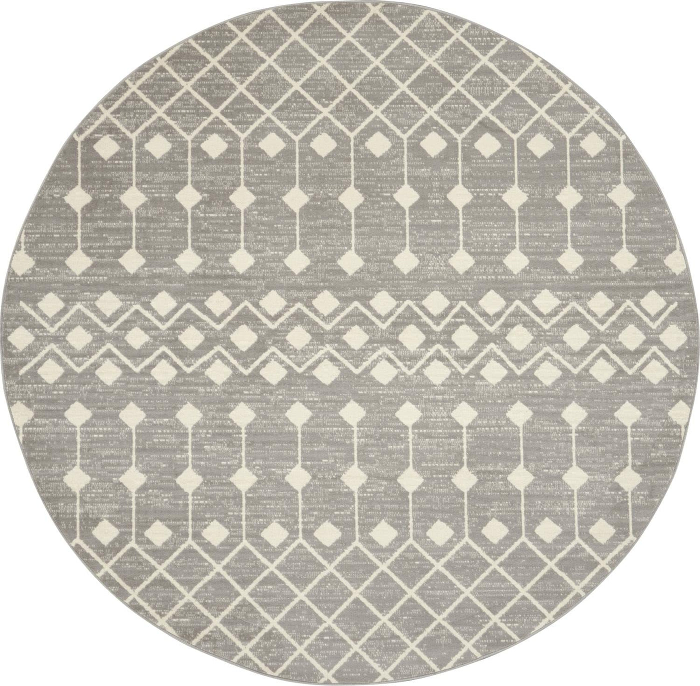 Nourison Grafix Moroccan Grey 8' X Round Area Rug, Easy Cleaning, Non Shedding, Bed Room, Living Room, Dining Room, Kitchen (8 R
