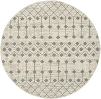 Nourison Grafix Moroccan Ivory/Grey 5'3' X Round Area Rug, Easy Cleaning, Non Shedding, Bed Room, Living Room, Dining Room, Kit