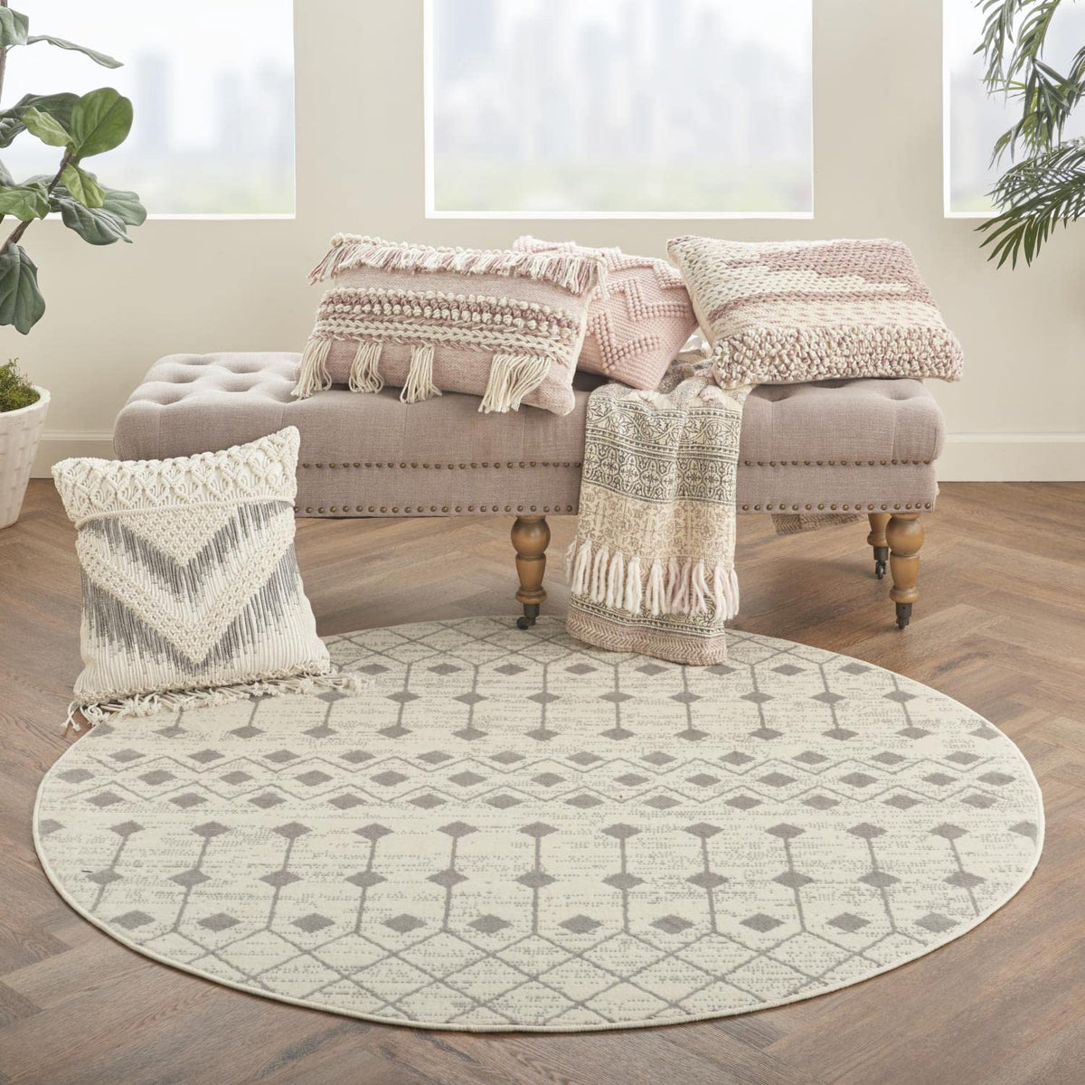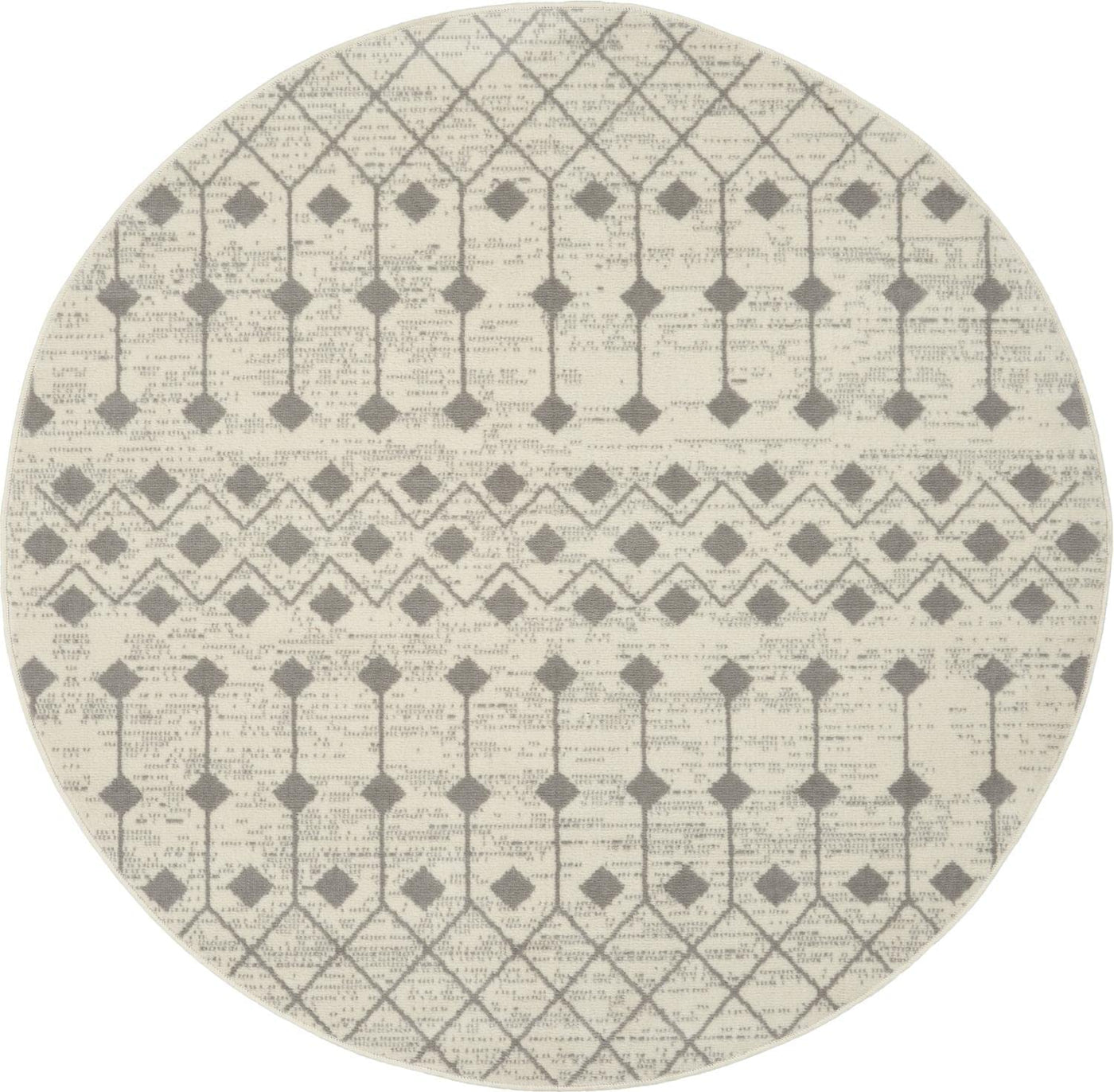 Nourison Grafix Moroccan Ivory/Grey 8' X Round Area Rug, Easy Cleaning, Non Shedding, Bed Room, Living Room, Dining Room, Kitche