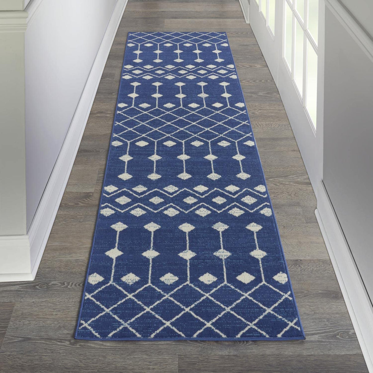 Nourison Grafix Moroccan Navy 2'3' X 7'6' Area Rug, Easy Cleaning, Non Shedding, Bed Room, Living Room, Dining Room, Kitchen (