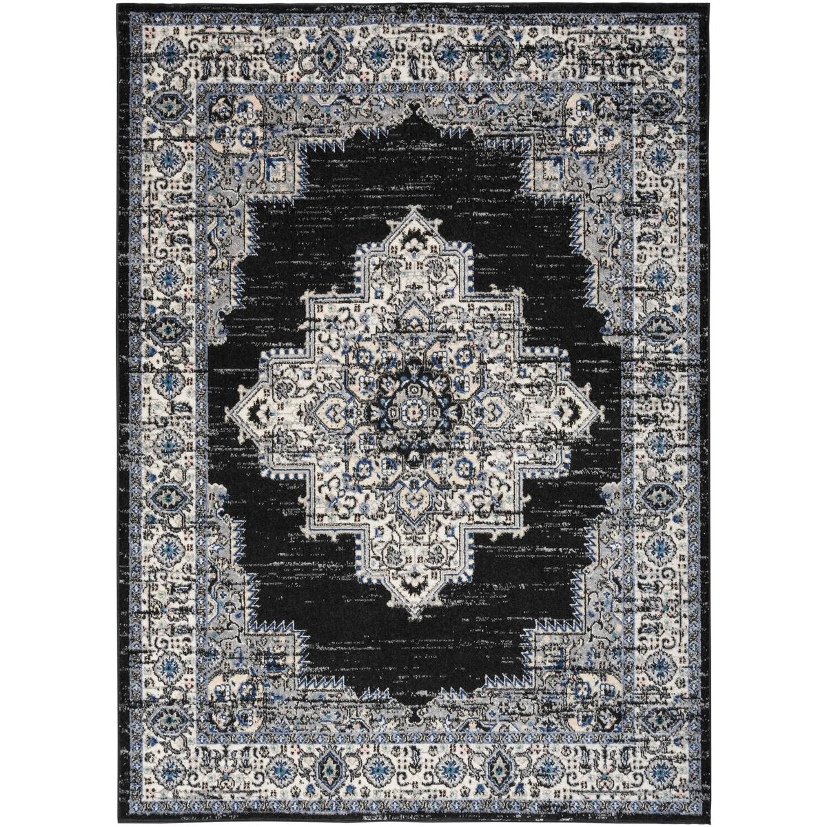 Nourison Passion Black Ivory 5'3'' X 7'3'' Area Rug, Boho, Traditional, Easy-Cleaning, Non Shedding, Bed Room, Living Room, Hall