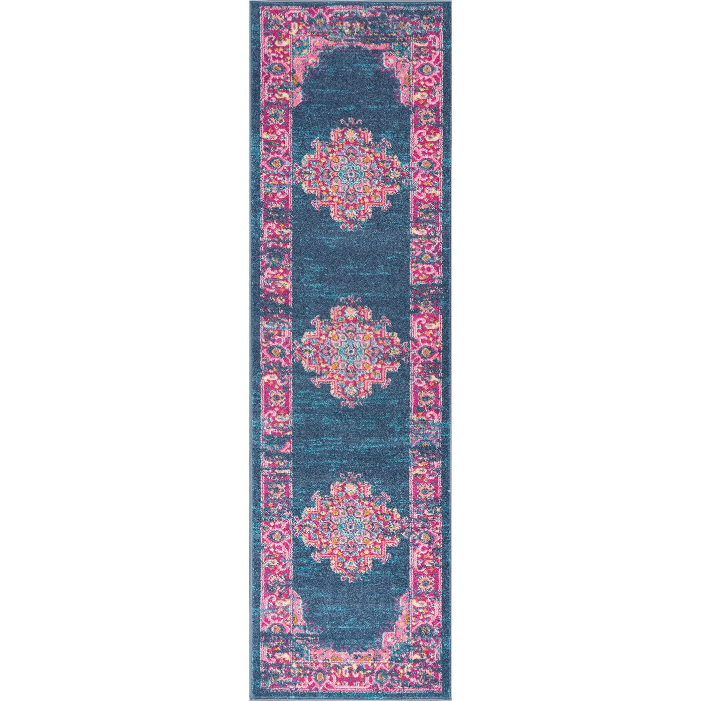 Nourison Passion Blue 2'2' X 10' Area Rug, Boho, Traditional, Easy Cleaning, Non Shedding, Bed Room, Living Room, Hallway, (10' Runner)
