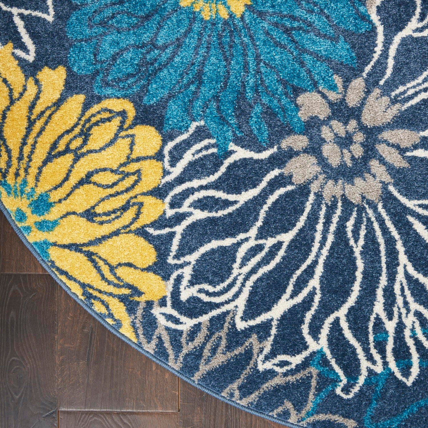 Nourison Passion Blue 4' X Round Area Rug, Floral, Farmhouse, Easy Cleaning, Non Shedding, Bed Room, Living Room, Dining Room, Kitchen, (4' Round)