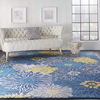 Nourison Passion Blue 9' X 12' Area Rug, Floral, Farmhouse, Easy Cleaning, Non Shedding, Bed Room, Living Room, Dining Room, Kit