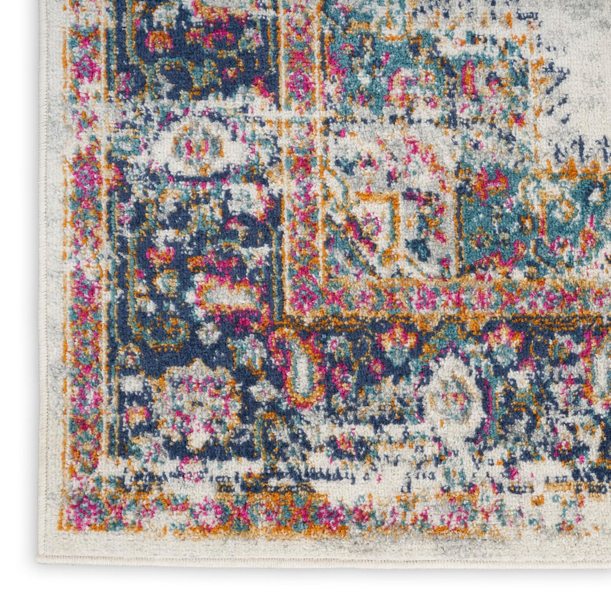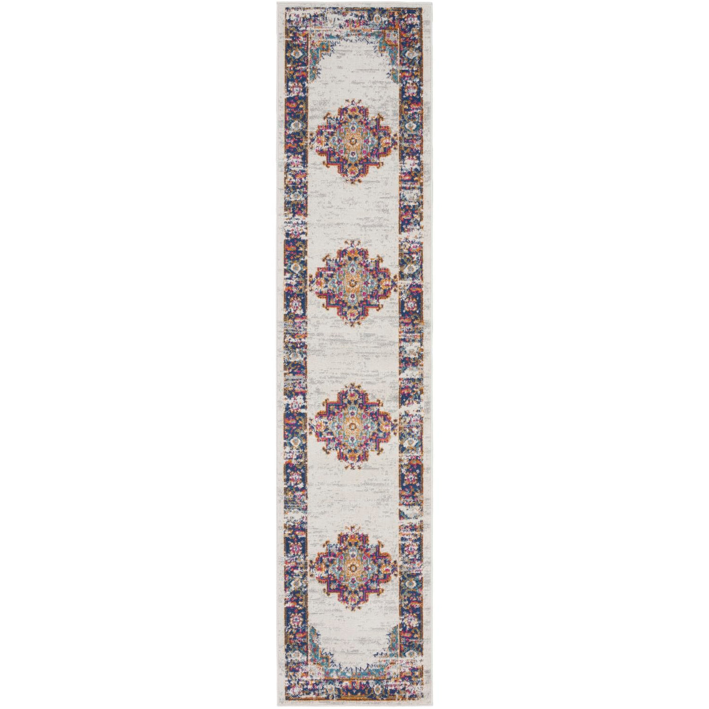 Nourison Passion Bordered Ivory Blue 2'2'' X 10' Area -Rug, Easy -Cleaning, Non Shedding, Bed Room, Living Room, Dining Room, Ki