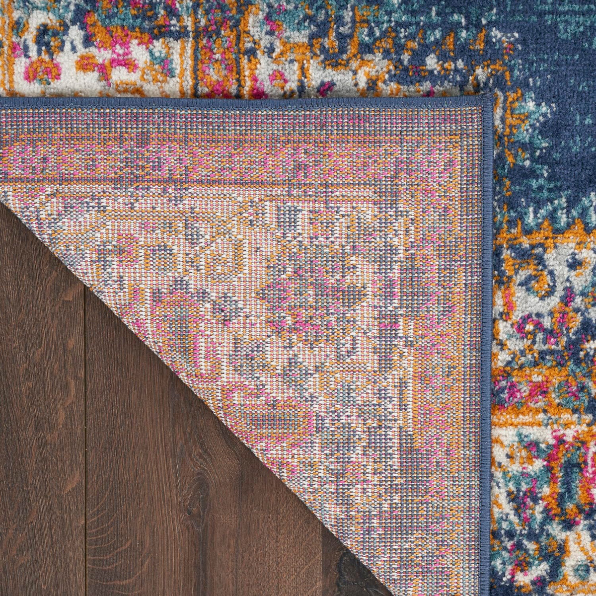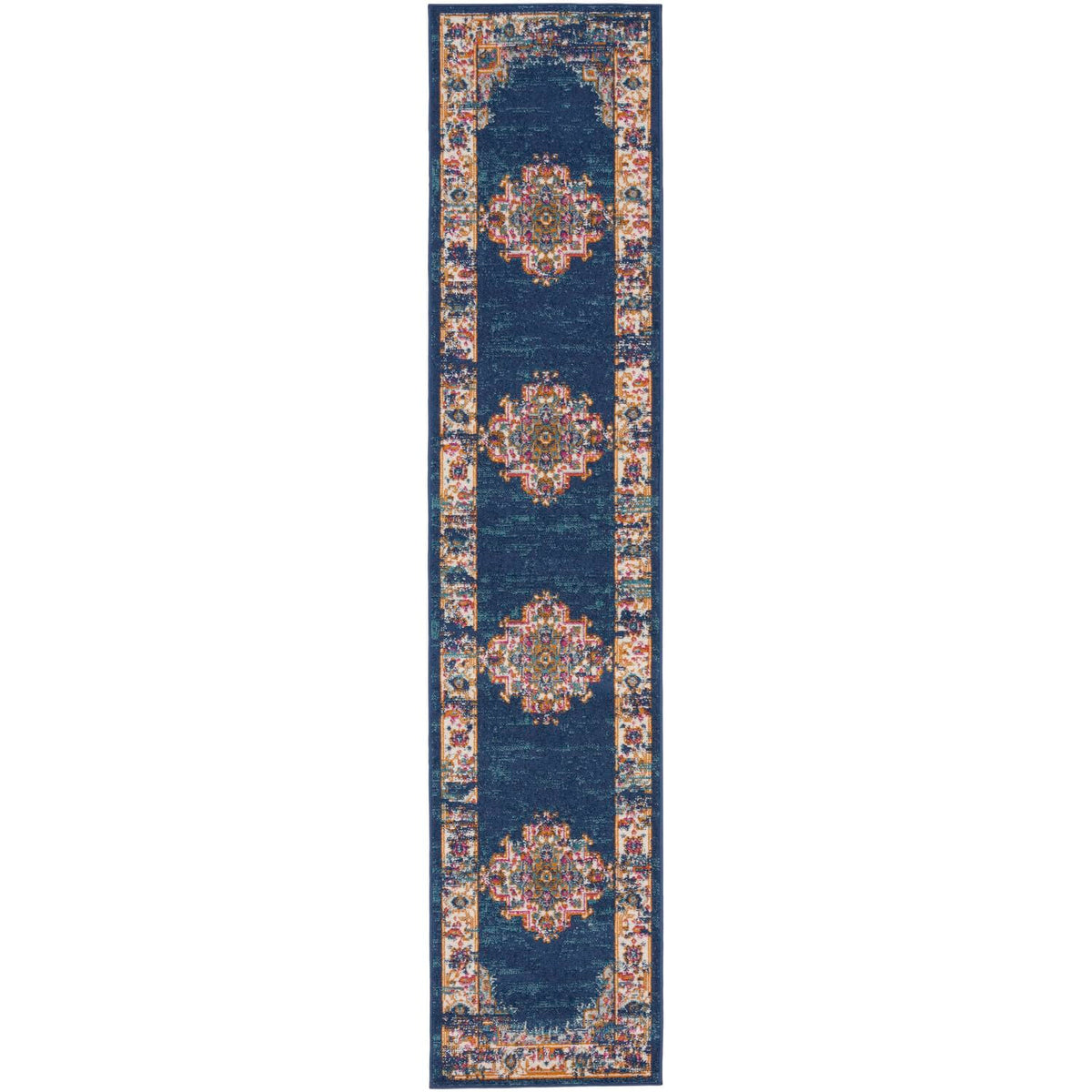 Nourison Passion Bordered Navy 2'2'' X 10' Area -Rug, Easy -Cleaning, Non Shedding, Bed Room, Living Room, Dining Room, Kitchen