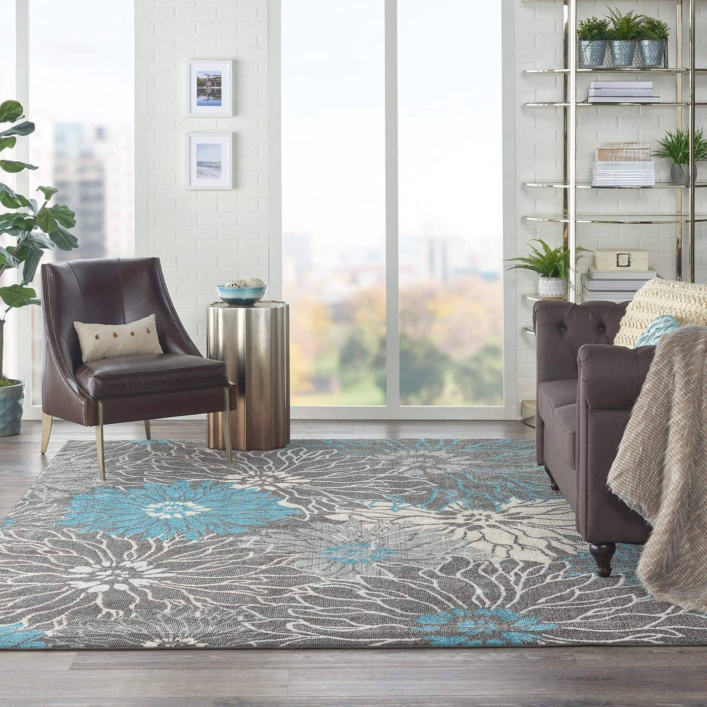 Nourison Passion Charcoal/Blue 9' X 12' Area Rug, Floral, Farmhouse, Easy Cleaning, Non Shedding, Bed Room, Living Room, Dining