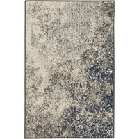 Q: What is the design style of the Nourison Passion Area Rug?A: The Nourison Passion Area Rug features a modern abstract design with rich charcoal and ivory tones, complemented by touches of midnight blue, making it a versatile addition to any contemporary home decor.