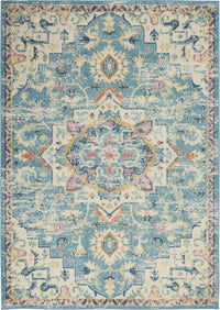 Nourison Passion Ivory/Light Blue 5'3' X 7'3' Area Rug, Boho, Moroccan, Bed Room, Living Room, Dining Room, Kitchen, Easy Clea