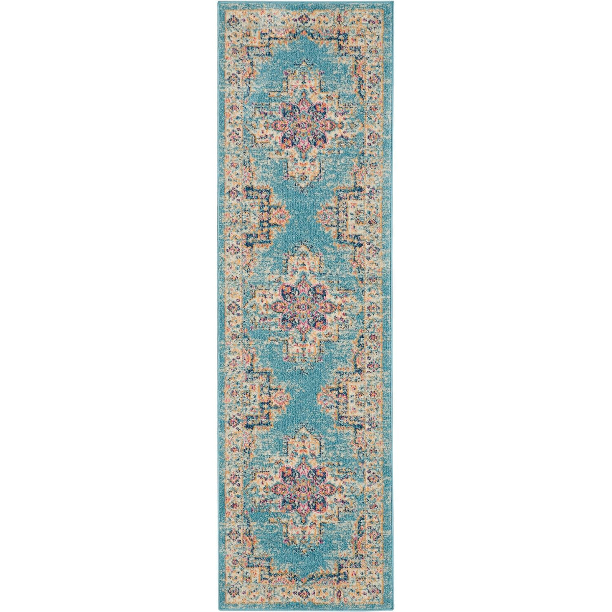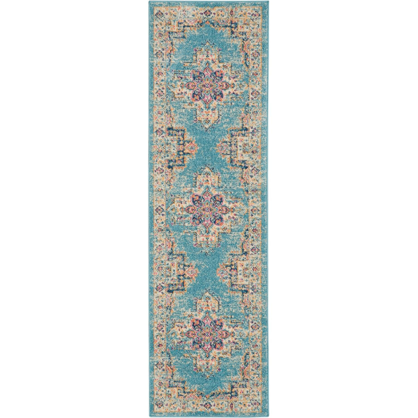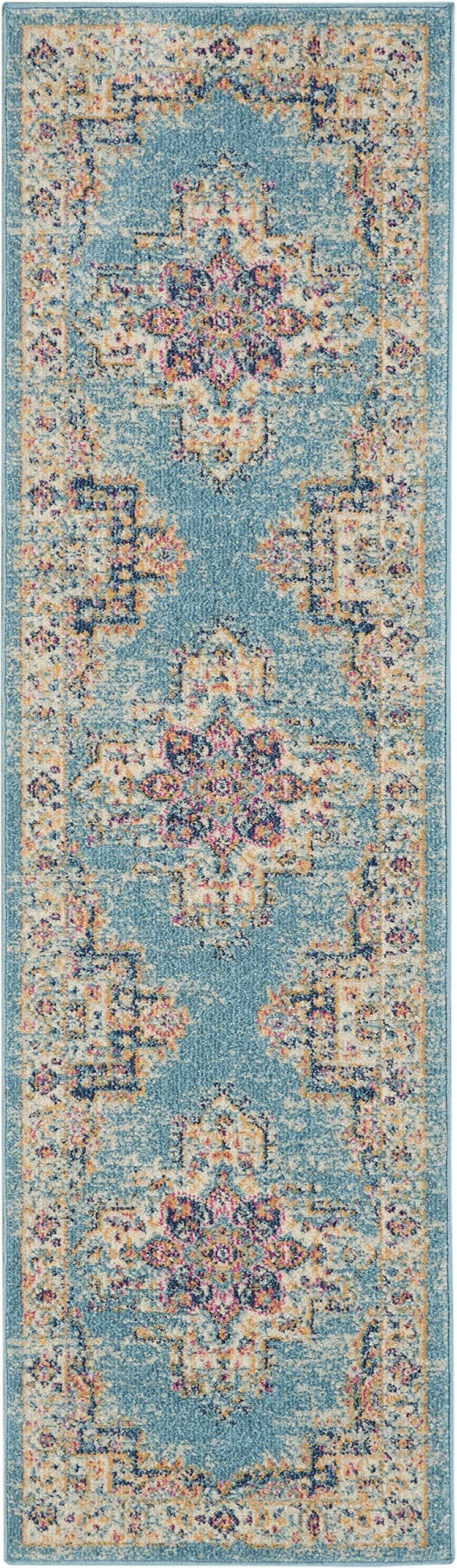 Nourison Passion Light Blue 2'2' X 7'6' Area Rug, Boho, Traditional, Easy Cleaning, Non Shedding, Bed Room, Living Room, Hallway, (8' Runner)
