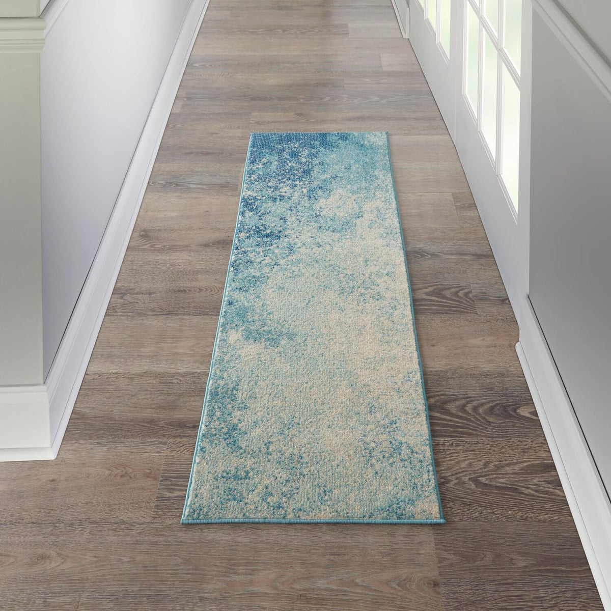 Nourison Passion Navy/Light Blue 1'10'' X 6' Area-Rug, Modern, Abstract, Easy-Cleaning, Non Shedding, Bed Room, Living Room, Din