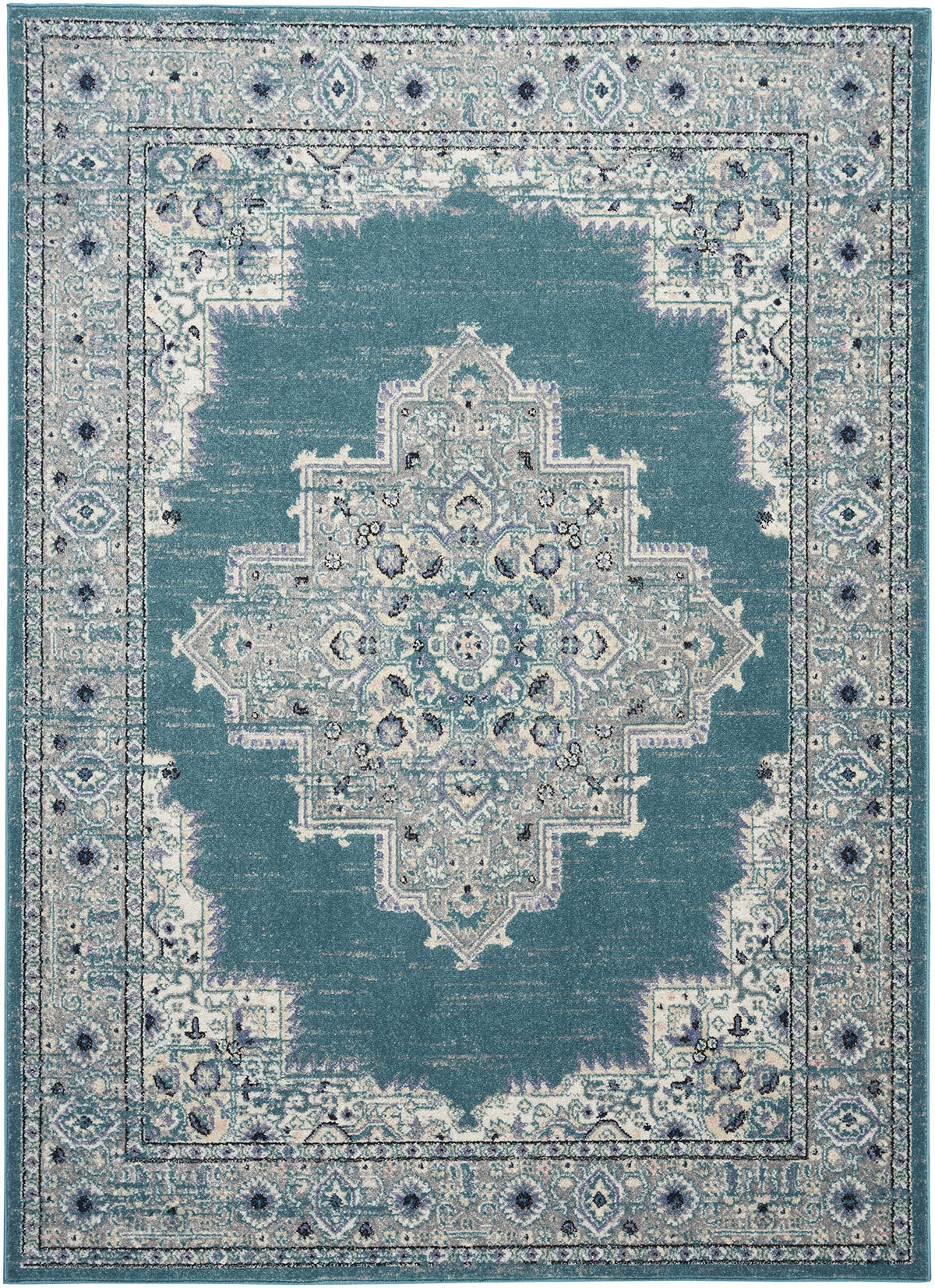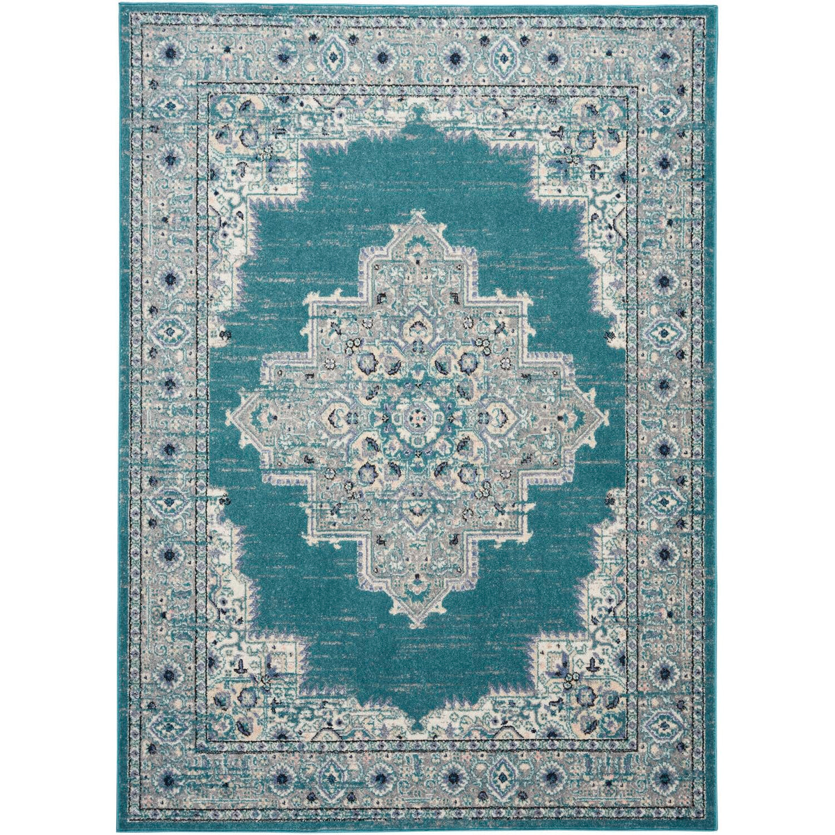 Nourison Passion Turquoise Grey 5'3' X 7'3' Area Rug, Boho, Traditional, Easy Cleaning, Non Shedding, Bed Room, Living Room, Hallway, (5' X 7')