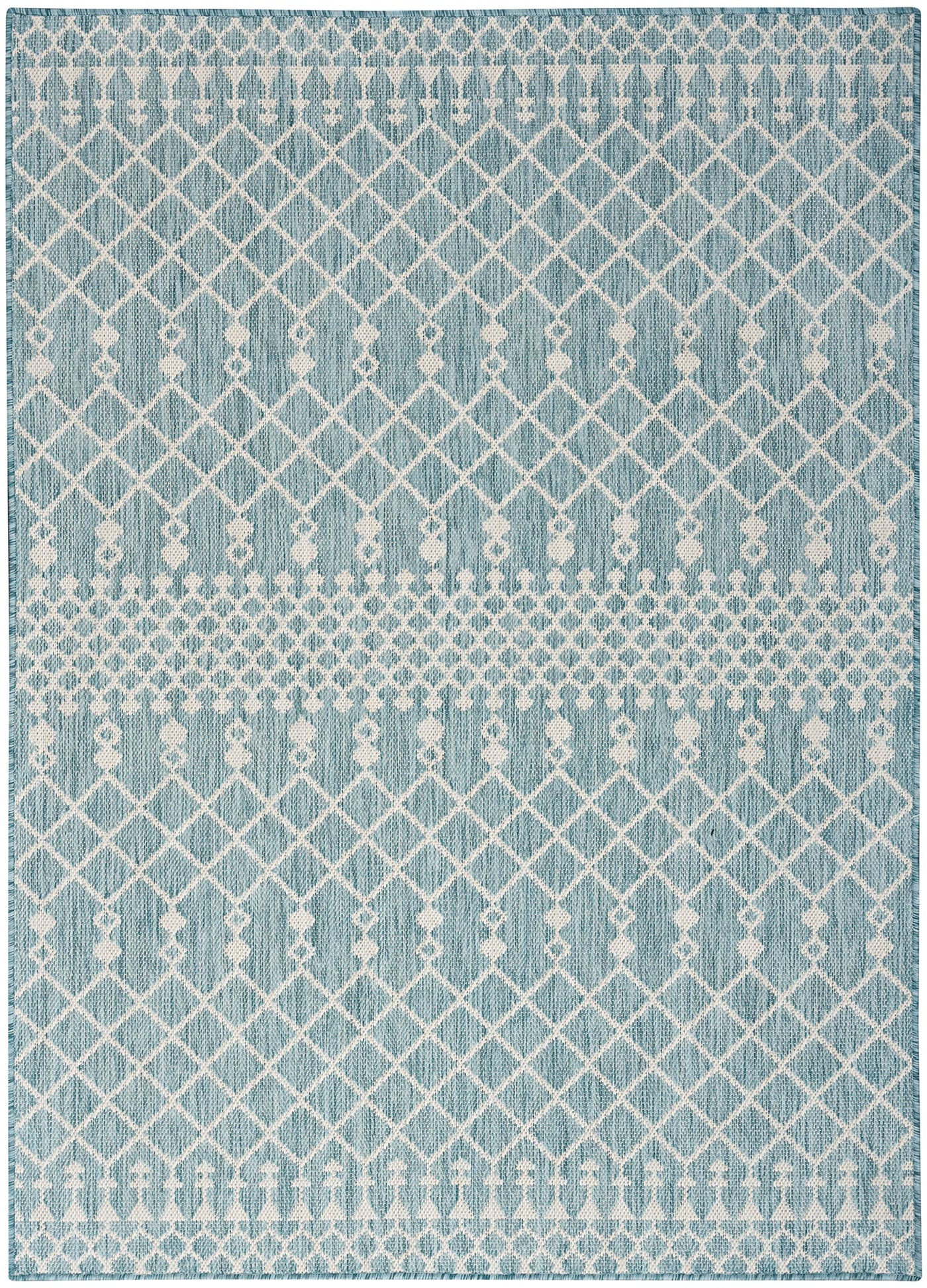 Nourison Positano Indoor/Outdoor Aqua 5' X 7' Area Rug, Easy Cleaning, Non Shedding, Bed Room, Living Room, Dining Room, Deck, Backyard, Patio (5X7)