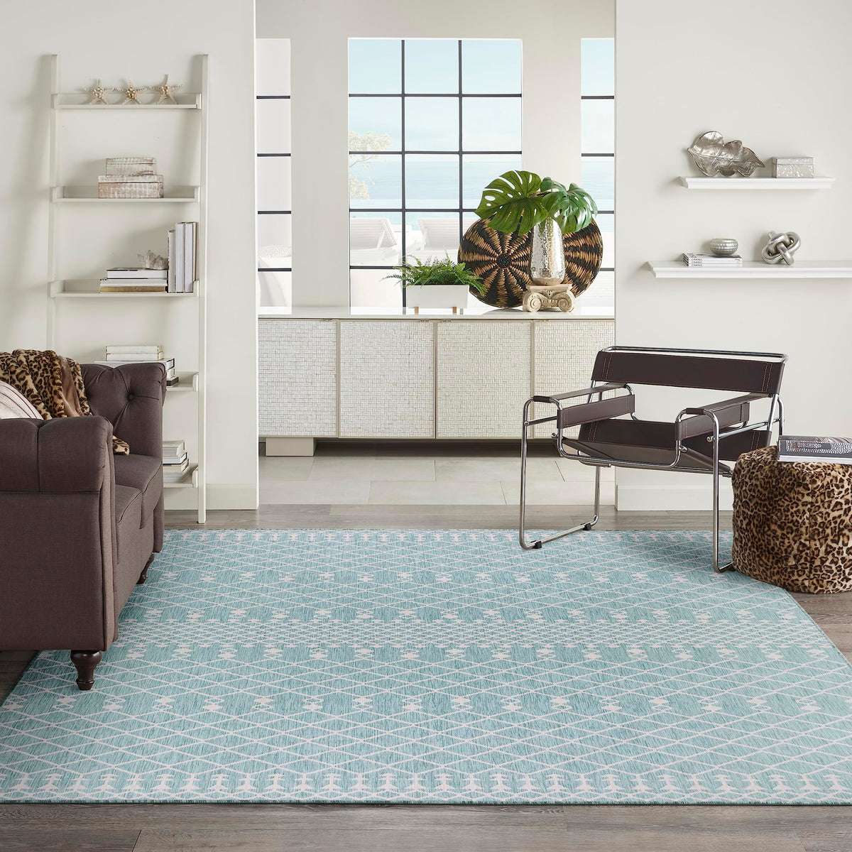 Nourison Positano Indoor/Outdoor Aqua 8' X 10' Area Rug, Easy Cleaning, Non Shedding, Bed Room, Living Room, Dining Room, Backyard, Deck, Patio (8X10)