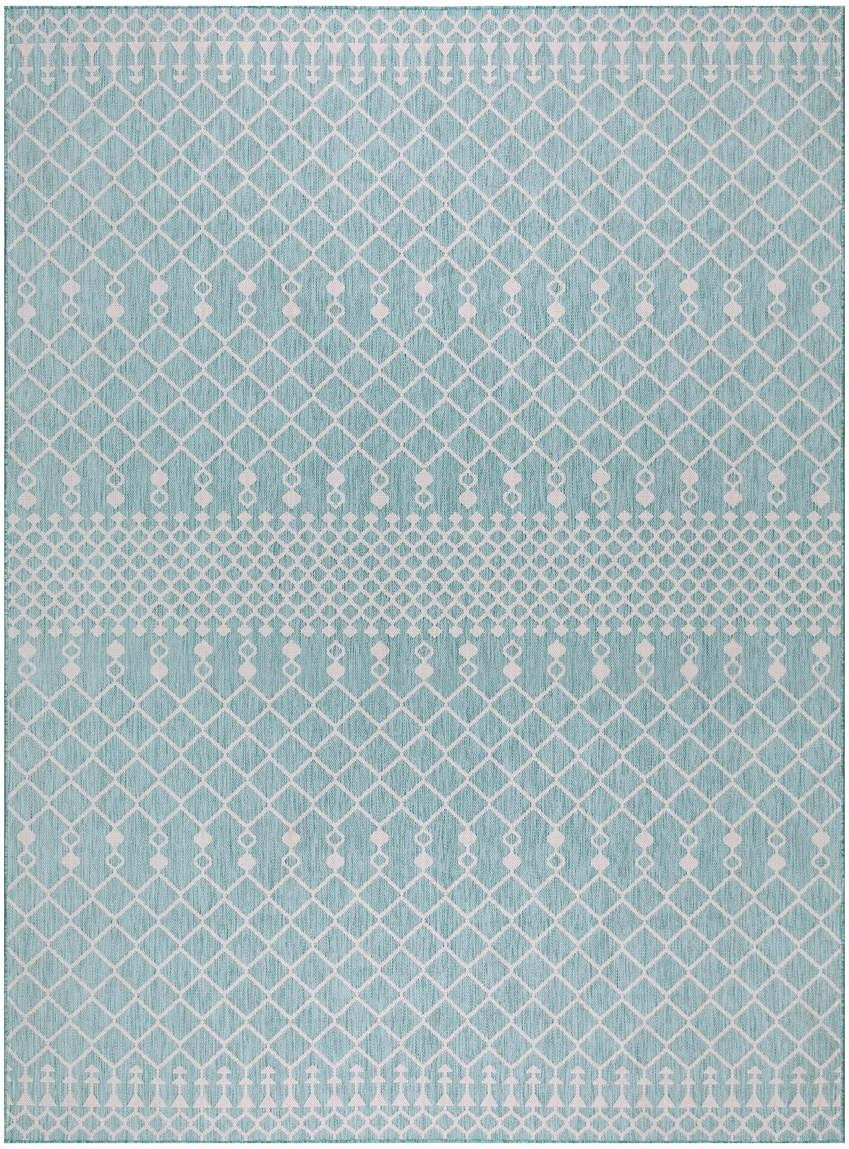 Upgrade your outdoor lifestyle with the rich, textural appeal of a Positano outdoor rug. These flatweave rugs are elegant enough for your living room or dining room, yet durable enough to enjoy outdoors on your porch, patio, or deck! Choose from a spectrum of versatile neutrals and colorful rugs that display exciting variations thanks to the space-dyed, striated yarns. Machine-made from polypropylene for easy cleaning: just hose rinse and air dry. Bring boho style to with a touch of modern flair to your space with this blue outdoor rug from the Positano Collection. The classic Moroccan trellis pattern is woven onto a multi-toned ground that offers intriguing visual contrast that you can roll out just about anywhere – from the patio, deck, and balcony to the living room, dining room, and kitchen. This flatweave rug is machine-made from durable polypropylene fibers that are easy to clean: just hose rinse and air dry