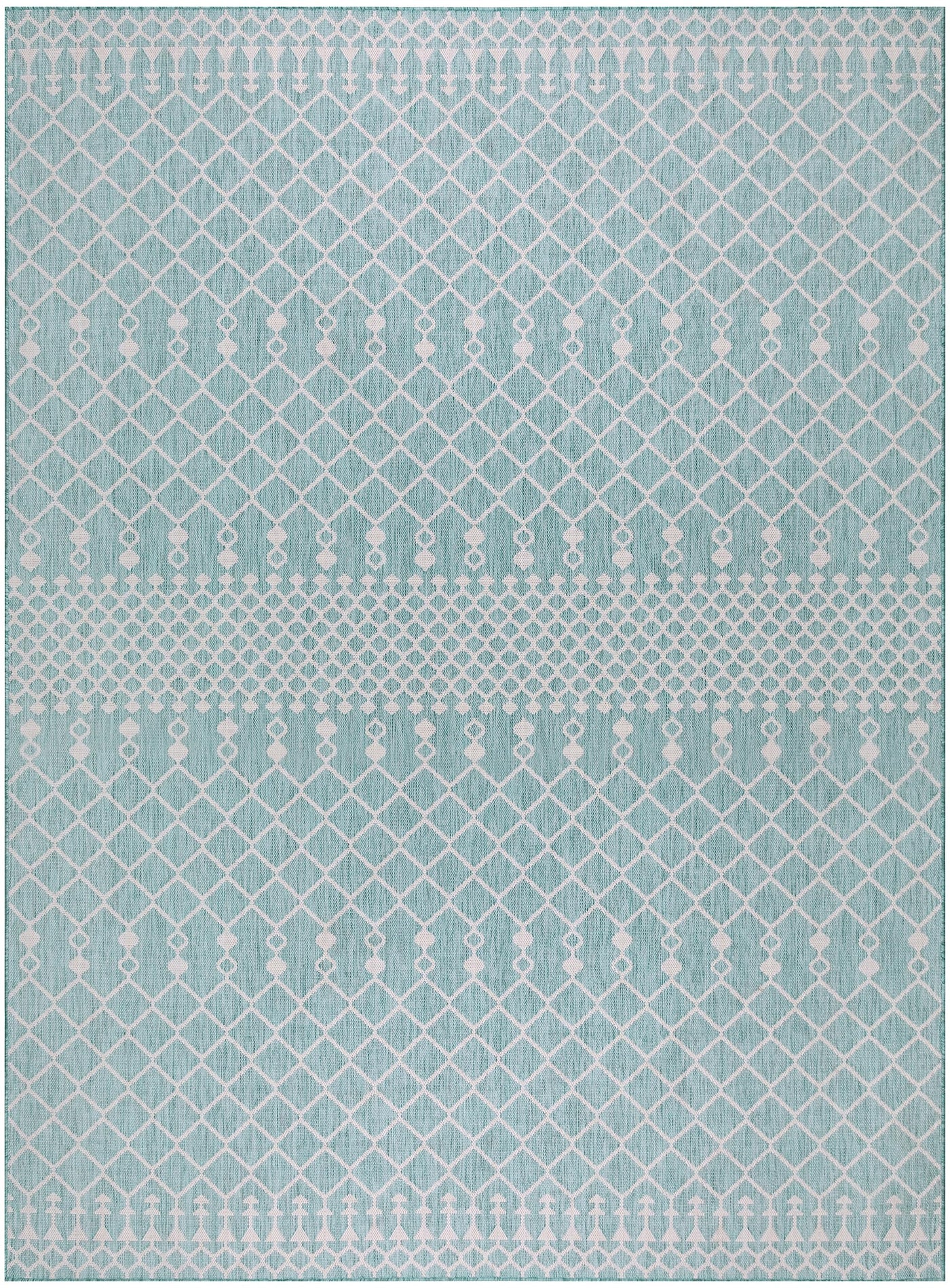 Upgrade your outdoor lifestyle with the rich, textural appeal of a Positano outdoor rug. These flatweave rugs are elegant enough for your living room or dining room, yet durable enough to enjoy outdoors on your porch, patio, or deck! Choose from a spectrum of versatile neutrals and colorful rugs that display exciting variations thanks to the space-dyed, striated yarns. Machine-made from polypropylene for easy cleaning: just hose rinse and air dry. Bring boho style to with a touch of modern flair to your space with this blue outdoor rug from the Positano Collection. The classic Moroccan trellis pattern is woven onto a multi-toned ground that offers intriguing visual contrast that you can roll out just about anywhere – from the patio, deck, and balcony to the living room, dining room, and kitchen. This flatweave rug is machine-made from durable polypropylene fibers that are easy to clean: just hose rinse and air dry