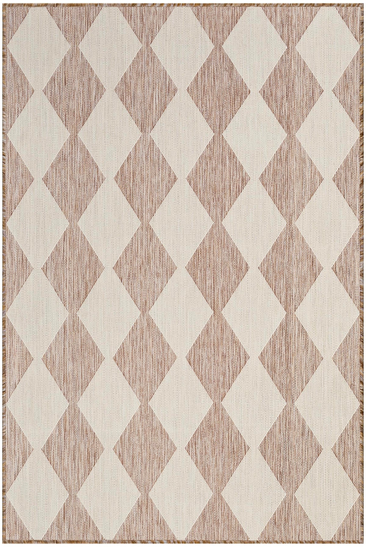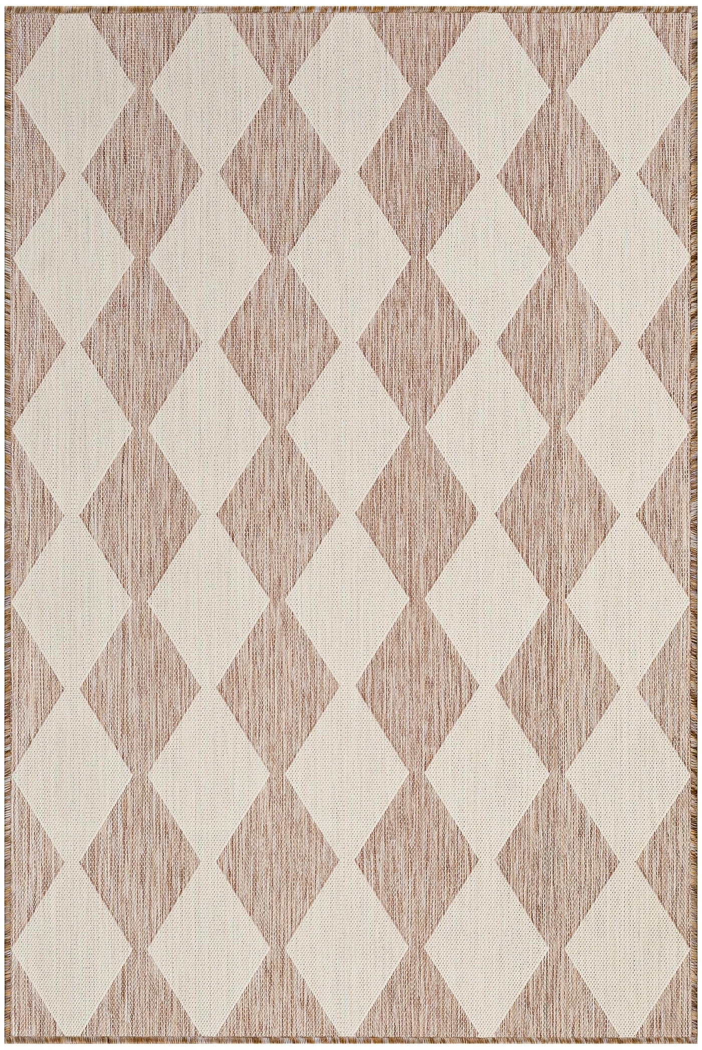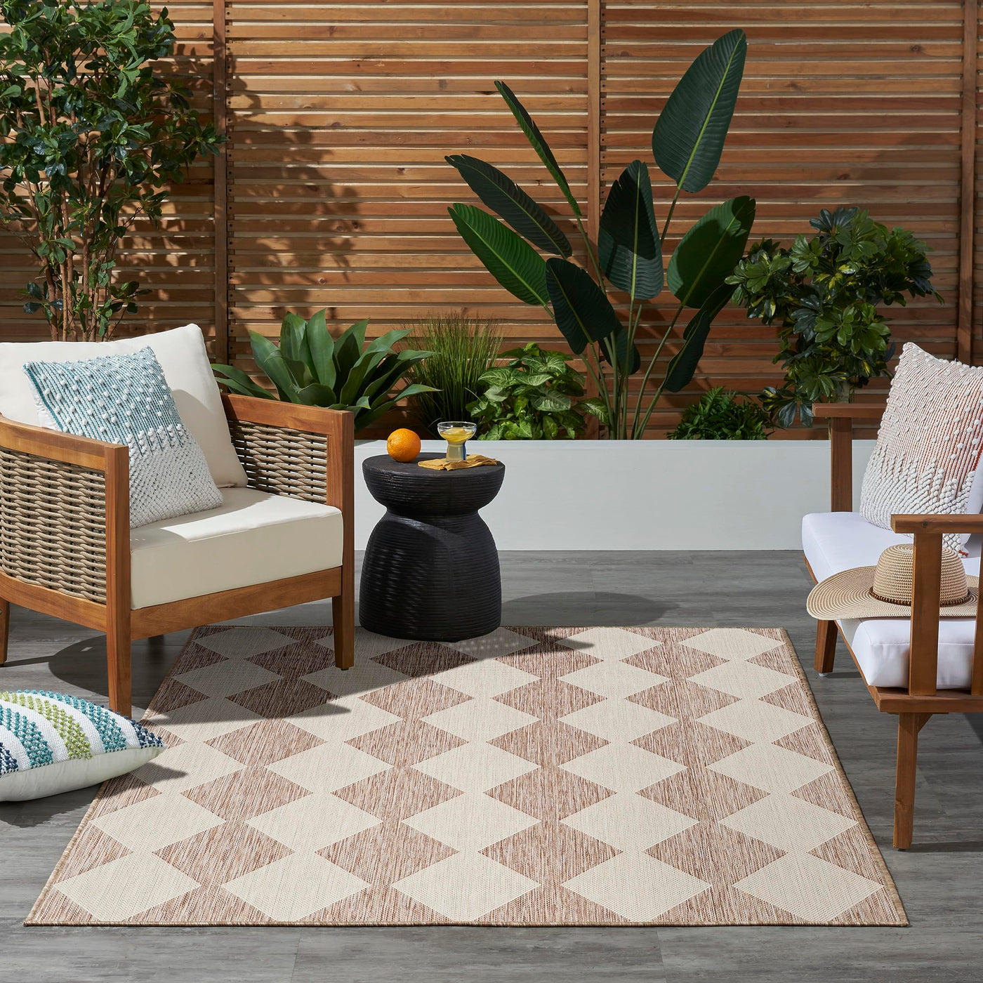 Upgrade your outdoor lifestyle with the rich, textural appeal of a Positano outdoor rug. These flatweave rugs are elegant enough for your living room or dining room, yet durable enough to enjoy outdoors on your porch, patio, or deck! Choose from a spectrum of versatile neutrals and colorful rugs that display exciting variations thanks to the space-dyed, striated yarns. Machine-made from polypropylene for easy cleaning: just hose rinse and air dry. Make a statement both inside and outside your home with this checkered diamond outdoor rug from the Positano collection. The retro tile-inspired design adds a stunning pop of pattern, boosted by a space-dyed color effect in beige. This versatile rug is flat woven for easy placement in all your most used rooms – from the living room, kitchen, and bathroom to the patio, backyard, or deck.