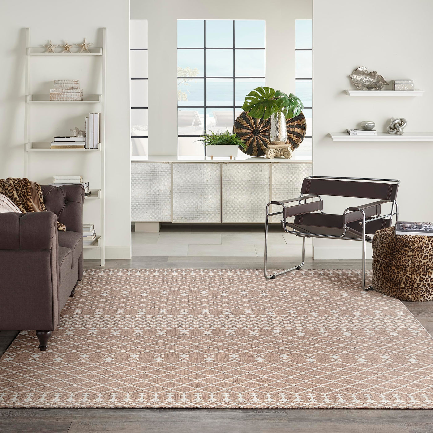 Nourison Positano Indoor/Outdoor Beige 9' X 12' Area Rug, Easy Cleaning, Non Shedding, Bed Room, Living Room, Dining Room, Backyard, Deck, Patio (9X12)