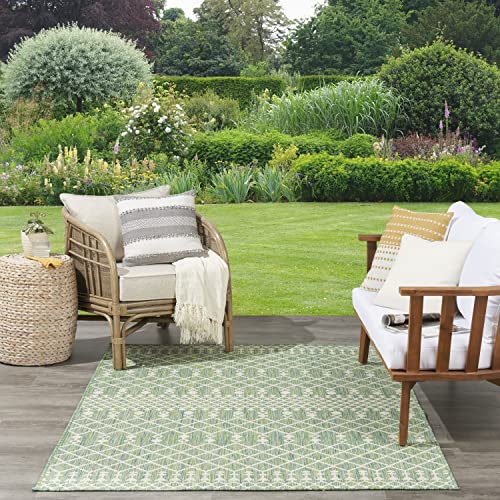 Nourison Positano Indoor/Outdoor Blue Green 4' X 6' Area Rug, Easy Cleaning, Non Shedding, Bed Room, Living Room, Dining Room, Deck, Backyard, Patio (4X6)