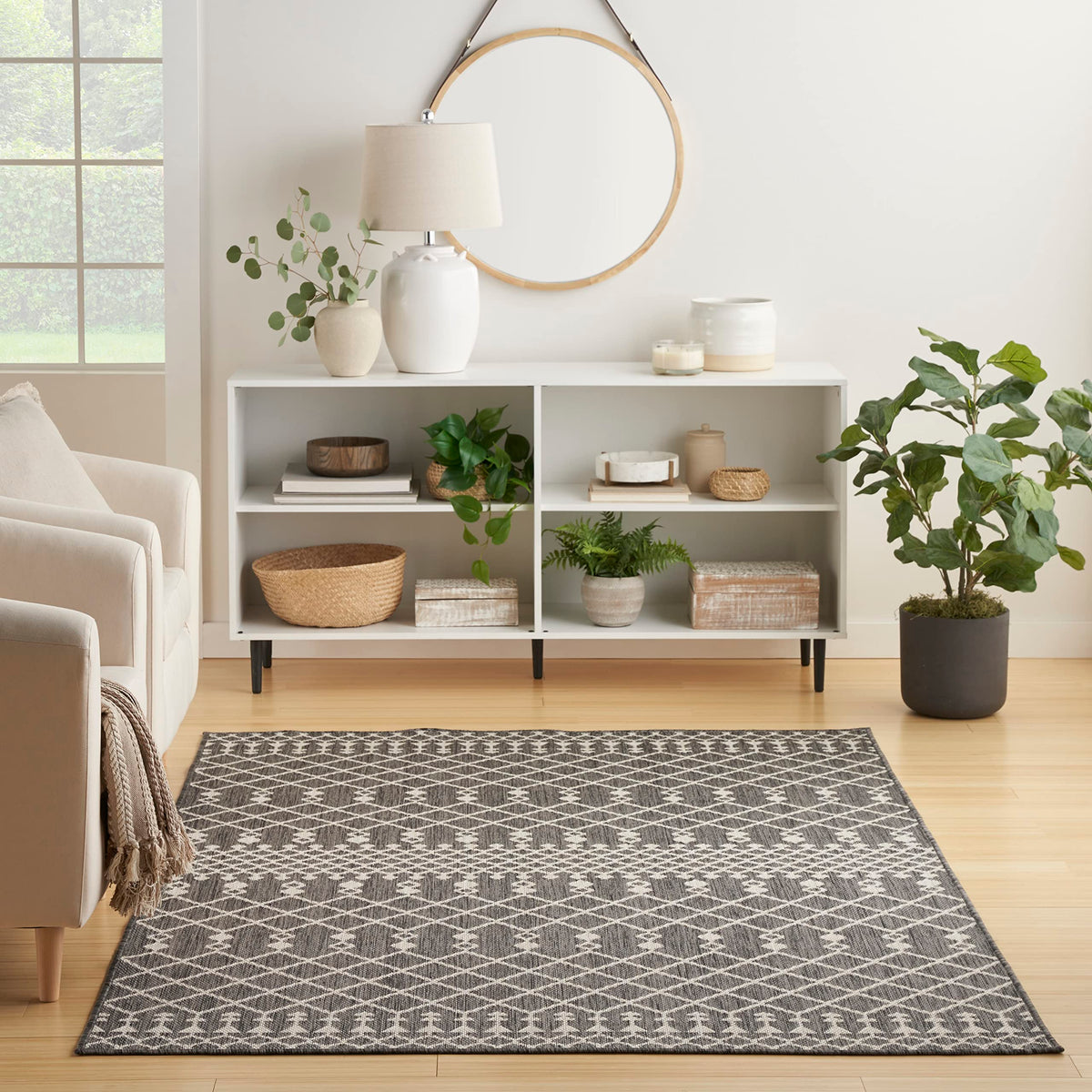 Nourison Positano Indoor/Outdoor Charcoal 5' X 7' Area Rug, Easy Cleaning, Non Shedding, Bed Room, Living Room, Dining Room, Deck, Backyard, Patio (5X7)