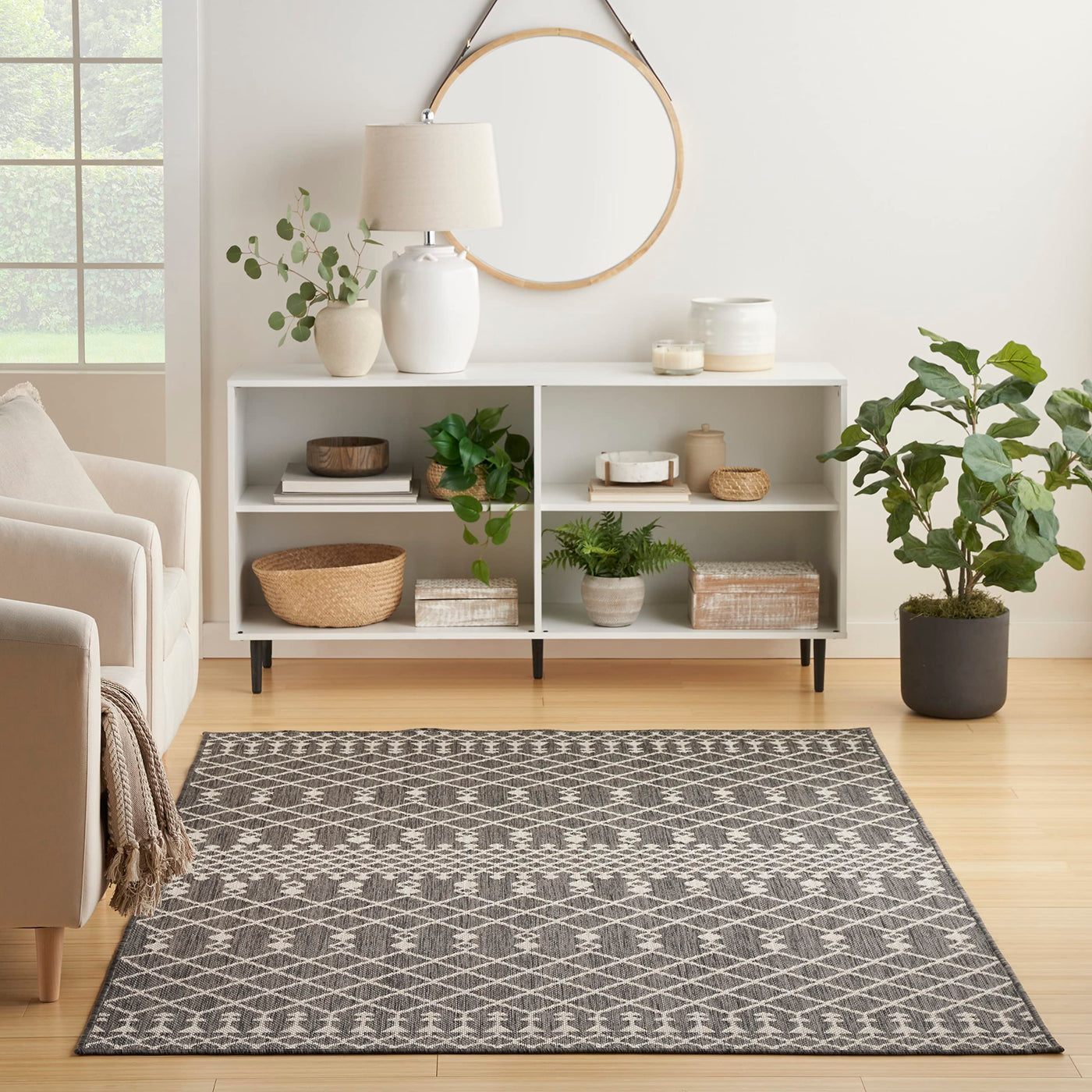 Nourison Positano Indoor/Outdoor Charcoal 7' X 10' Area Rug, Easy Cleaning, Non Shedding, Bed Room, Living Room, Dining Room, Deck, Backyard, Patio (7X10)
