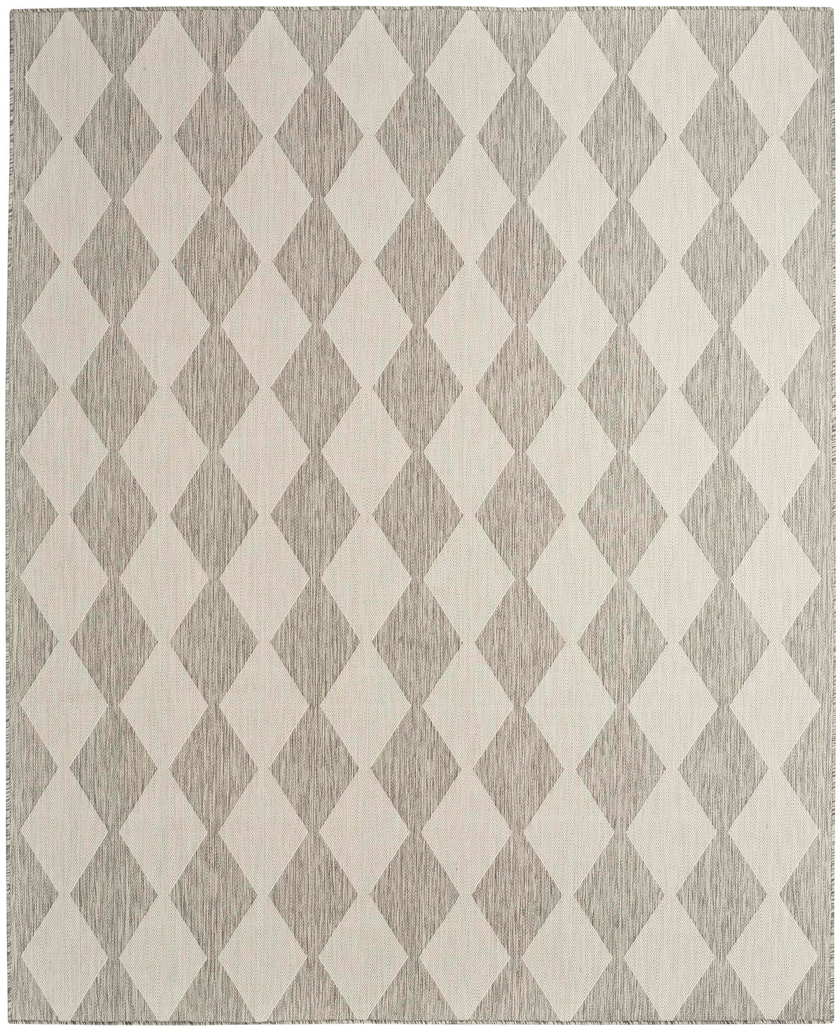 Upgrade your outdoor lifestyle with the rich, textural appeal of a Positano outdoor rug. These flatweave rugs are elegant enough for your living room or dining room, yet durable enough to enjoy outdoors on your porch, patio, or deck! Choose from a spectrum of versatile neutrals and colorful rugs that display exciting variations thanks to the space-dyed, striated yarns. Machine-made from polypropylene for easy cleaning: just hose rinse and air dry. Make a statement both inside and outside your home with this checkered diamond outdoor rug from the Positano collection. The retro tile-inspired design adds a stunning pop of pattern, boosted by a space-dyed color effect in light grey. This versatile rug is flat woven for easy placement in all your most used rooms – from the living room, kitchen, and bathroom to the patio, backyard, or deck.