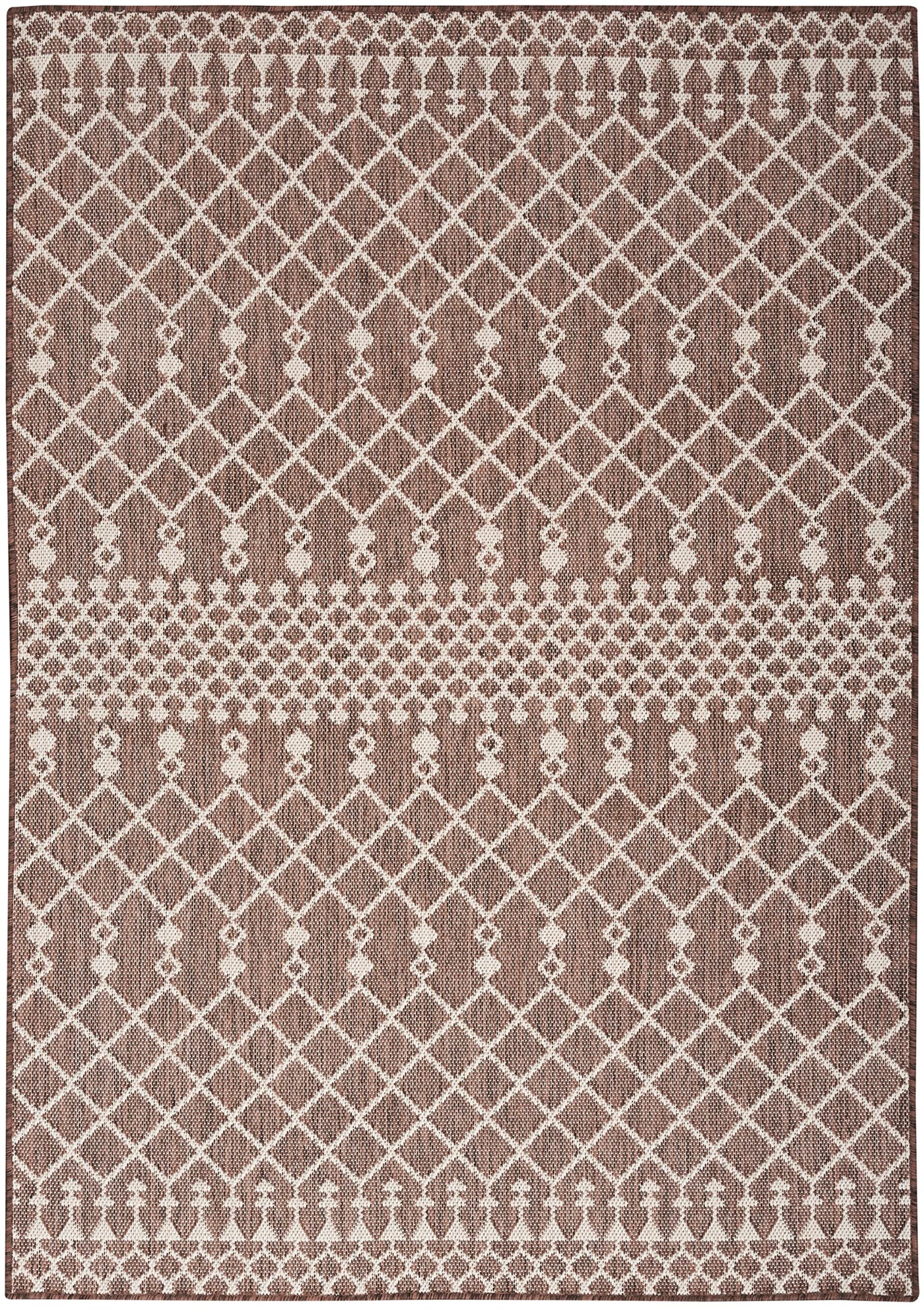 Upgrade your outdoor lifestyle with the rich, textural appeal of a Positano outdoor rug. These flatweave rugs are elegant enough for your living room or dining room, yet durable enough to enjoy outdoors on your porch, patio, or deck! Choose from a spectrum of versatile neutrals and colorful rugs that display exciting variations thanks to the space-dyed, striated yarns. Machine-made from polypropylene for easy cleaning: just hose rinse and air dry. Bring boho style to with a touch of modern flair to your space with this natural brown outdoor rug from the Positano Collection. The classic Moroccan trellis pattern is woven onto a multi-toned blue ground that offers intriguing visual contrast that you can roll out just about anywhere – from the patio, deck, and balcony to the living room, dining room, and kitchen. This flatweave rug is machine-made from durable polypropylene fibers that are easy to clean: just hose rinse and air dry.