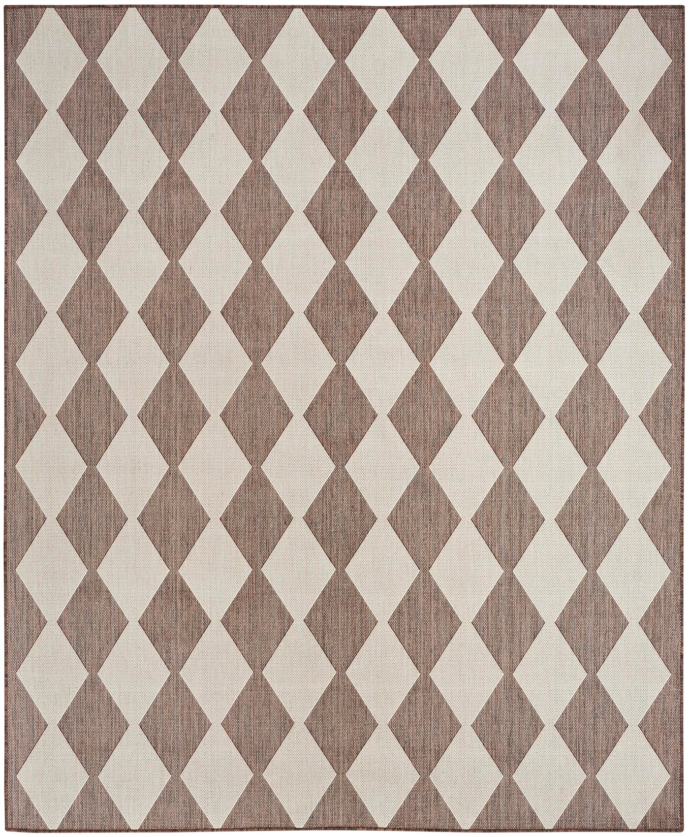 Upgrade your outdoor lifestyle with the rich, textural appeal of a Positano outdoor rug. These flatweave rugs are elegant enough for your living room or dining room, yet durable enough to enjoy outdoors on your porch, patio, or deck! Choose from a spectrum of versatile neutrals and colorful rugs that display exciting variations thanks to the space-dyed, striated yarns. Machine-made from polypropylene for easy cleaning: just hose rinse and air dry. Make a statement both inside and outside your home with this checkered diamond outdoor rug from the Positano collection. The retro tile-inspired design adds a stunning pop of pattern, boosted by a space-dyed color effect in natural brown. This versatile rug is flat woven for easy placement in all your most used rooms – from the living room, kitchen, and bathroom to the patio, backyard, or deck.