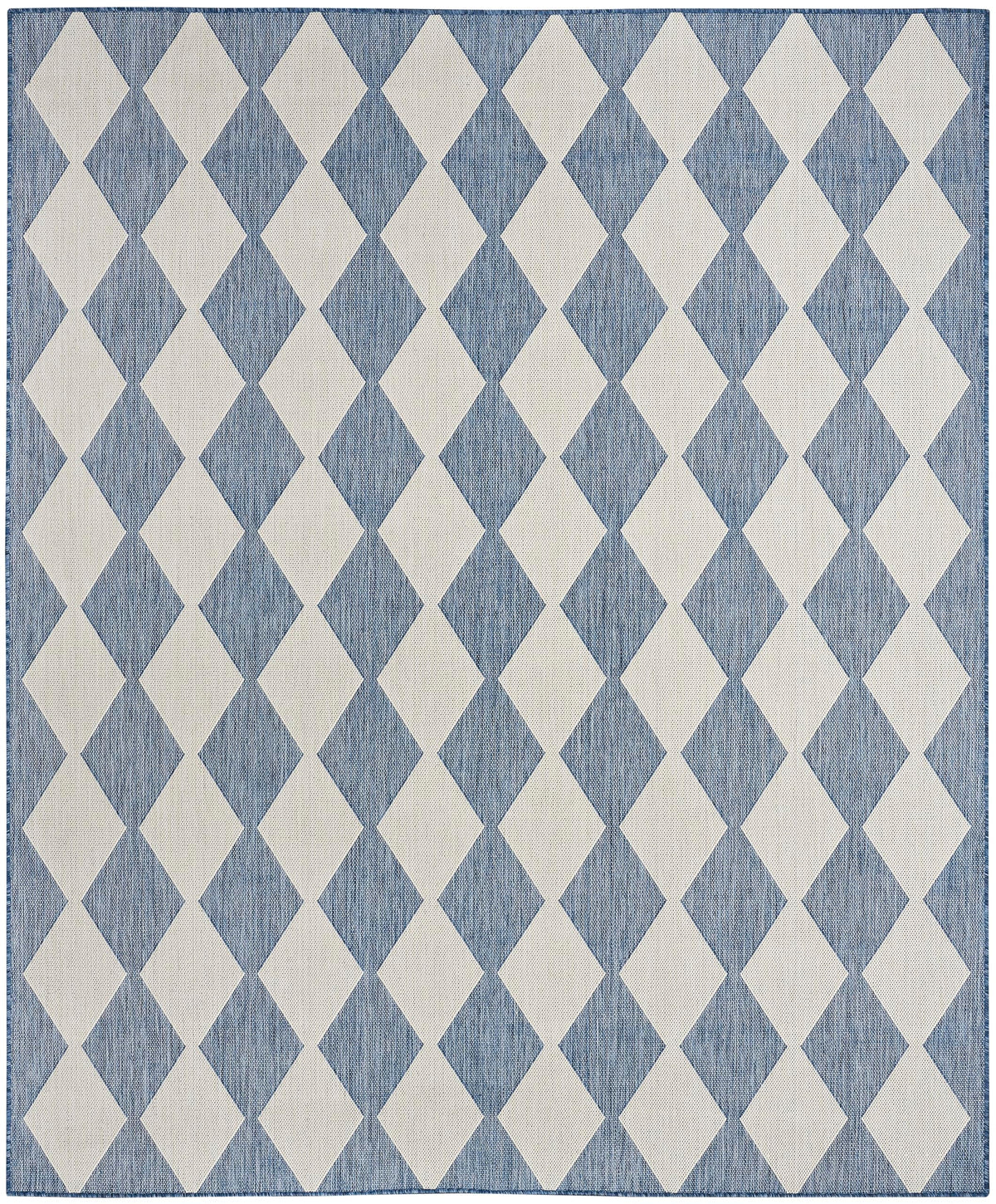Upgrade your outdoor lifestyle with the rich, textural appeal of a Positano outdoor rug. These flatweave rugs are elegant enough for your living room or dining room, yet durable enough to enjoy outdoors on your porch, patio, or deck! Choose from a spectrum of versatile neutrals and colorful rugs that display exciting variations thanks to the space-dyed, striated yarns. Machine-made from polypropylene for easy cleaning: just hose rinse and air dry. Make a statement both inside and outside your home with this checkered diamond outdoor rug from the Positano collection. The retro tile-inspired design adds a stunning pop of pattern, boosted by a space-dyed color effect in navy blue. This versatile rug is flat woven for easy placement in all your most used rooms – from the living room, kitchen, and bathroom to the patio, backyard, or deck.