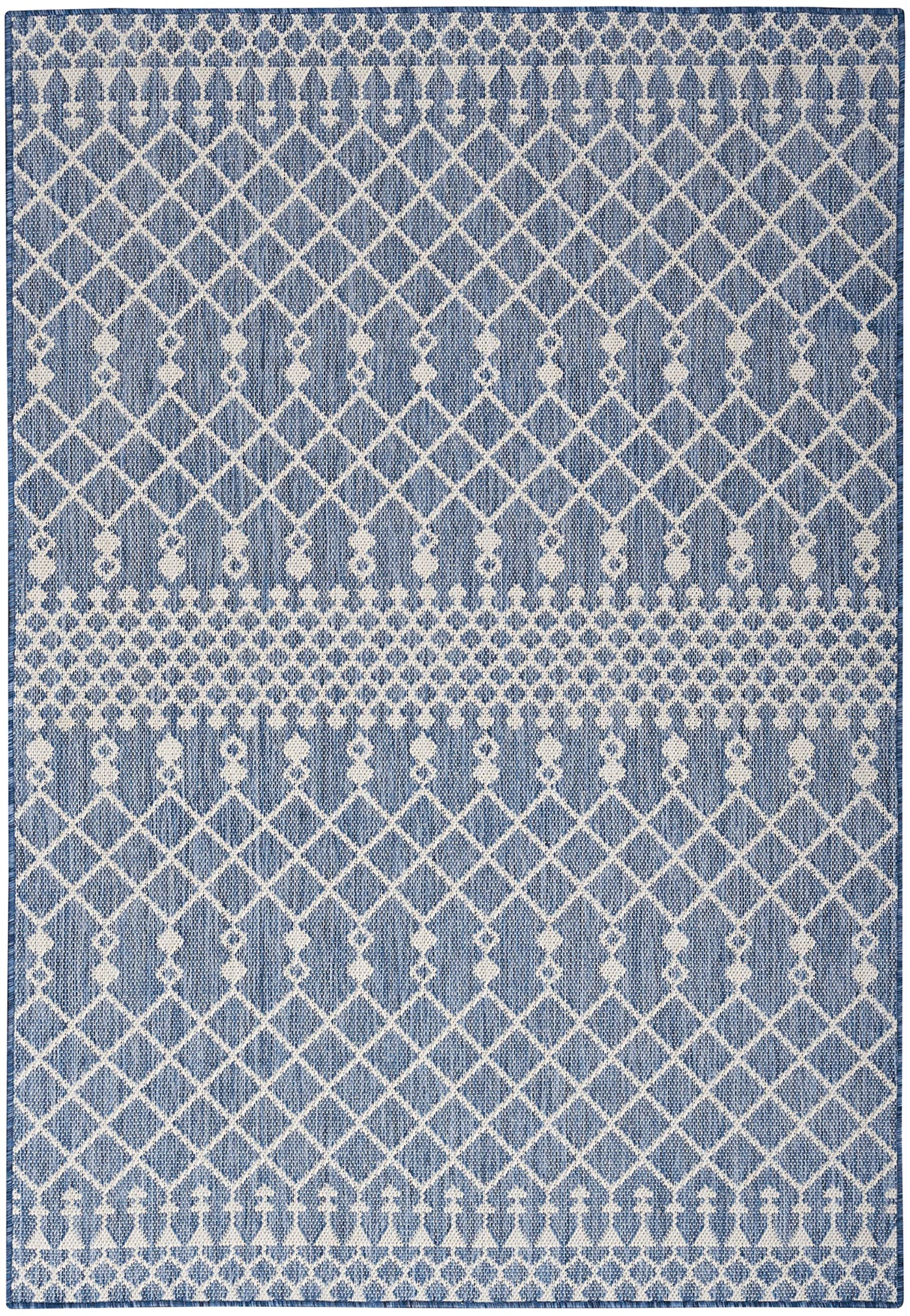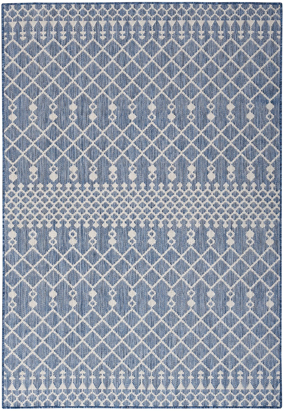 Upgrade your outdoor lifestyle with the rich, textural appeal of a Positano outdoor rug. These flatweave rugs are elegant enough for your living room or dining room, yet durable enough to enjoy outdoors on your porch, patio, or deck! Choose from a spectrum of versatile neutrals and colorful rugs that display exciting variations thanks to the space-dyed, striated yarns. Machine-made from polypropylene for easy cleaning: just hose rinse and air dry. Bring boho style to with a touch of modern flair to your space with this navy-blue outdoor rug from the Positano Collection. The classic Moroccan trellis pattern is woven onto a multi-toned blue ground that offers intriguing visual contrast that you can roll out just about anywhere – from the patio, deck, and balcony to the living room, dining room, and kitchen. This flatweave rug is machine-made from durable polypropylene fibers that are easy to clean: just hose rinse and air dry.