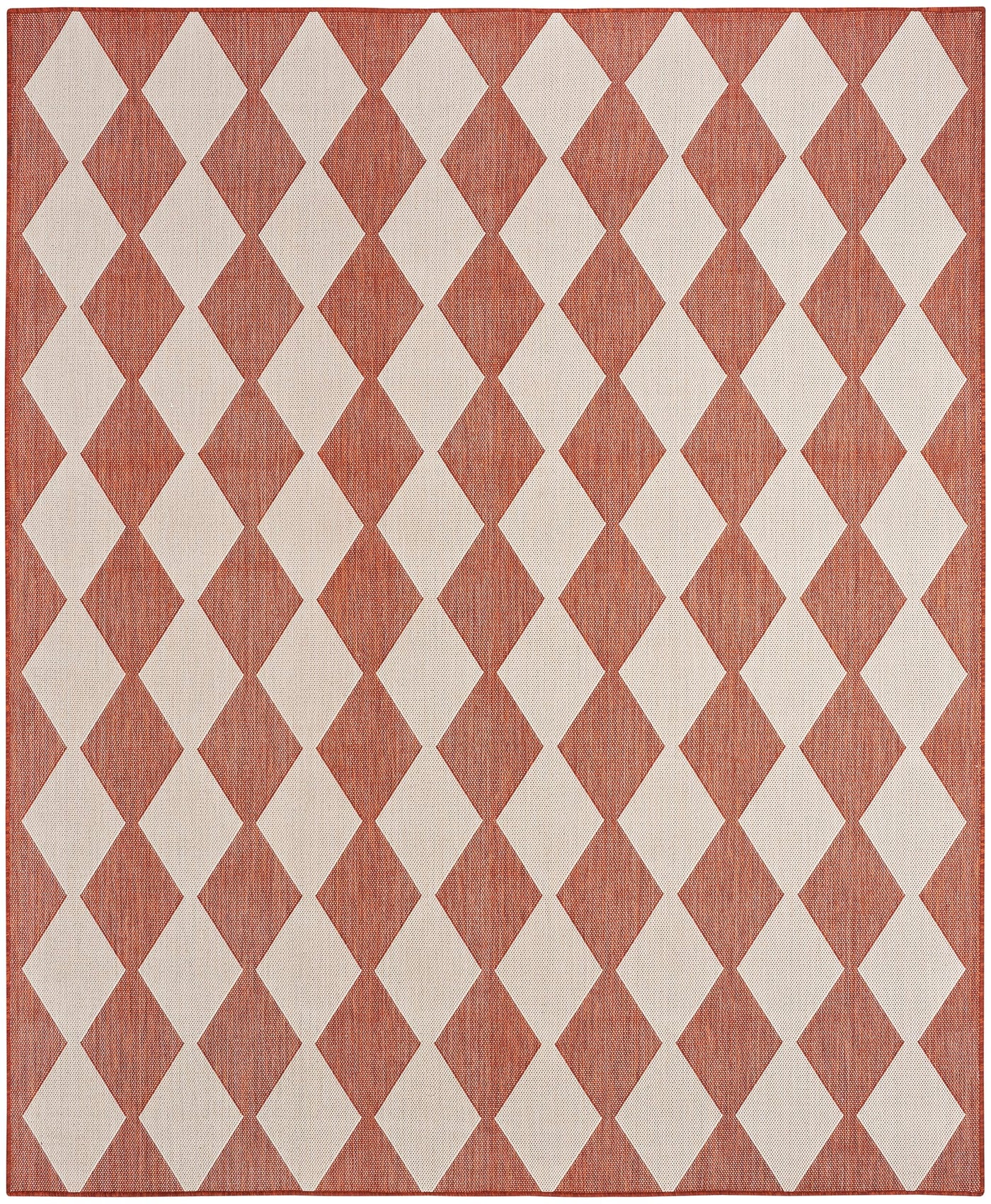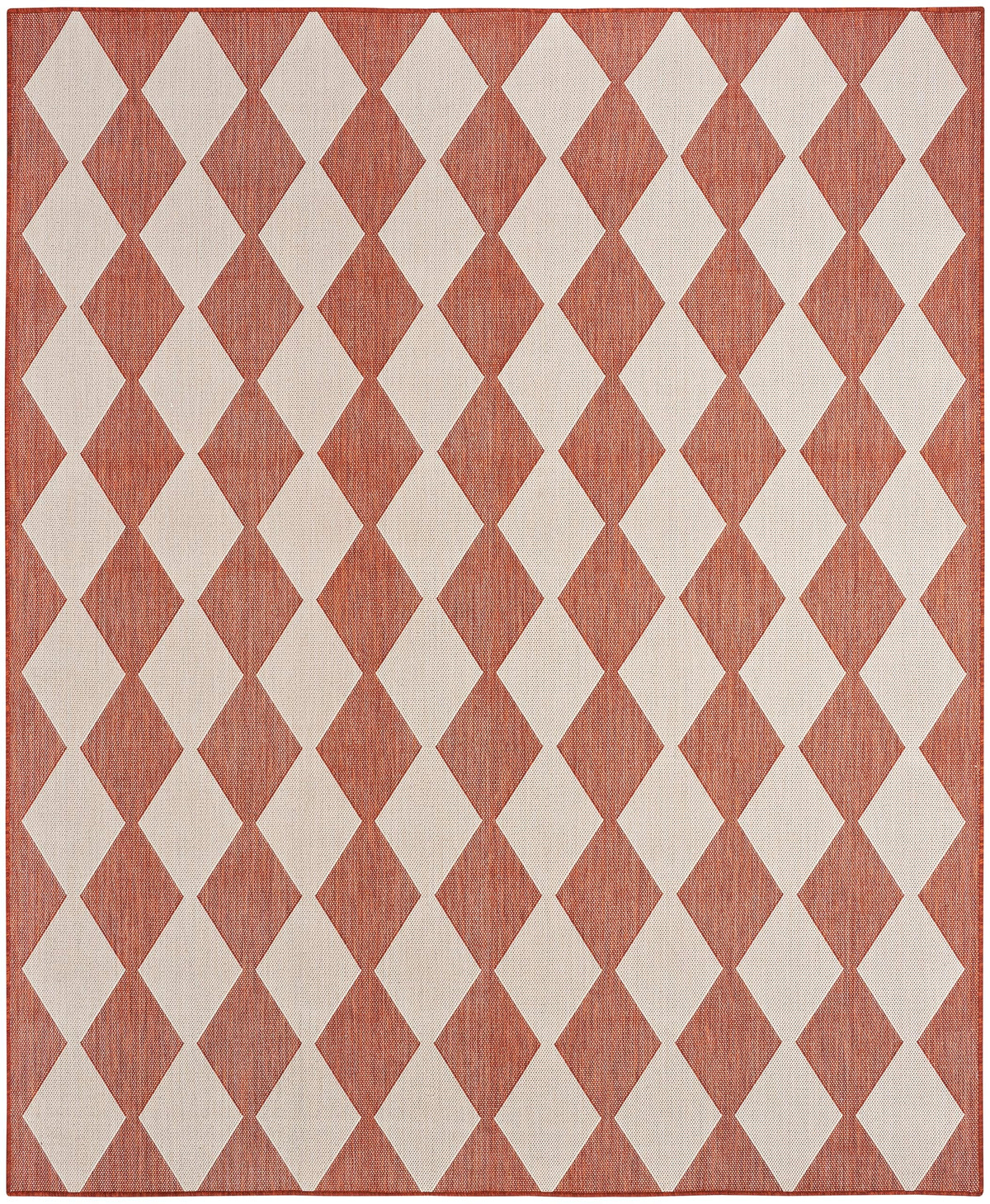 Upgrade your outdoor lifestyle with the rich, textural appeal of a Positano outdoor rug. These flatweave rugs are elegant enough for your living room or dining room, yet durable enough to enjoy outdoors on your porch, patio, or deck! Choose from a spectrum of versatile neutrals and colorful rugs that display exciting variations thanks to the space-dyed, striated yarns. Machine-made from polypropylene for easy cleaning: just hose rinse and air dry. Make a statement both inside and outside your home with this checkered diamond outdoor rug from the Positano collection. The retro tile-inspired design adds a stunning pop of pattern, boosted by a space-dyed color effect in terracotta orange. This versatile rug is flat woven for easy placement in all your most used rooms – from the living room, kitchen, and bathroom to the patio, backyard, or deck.