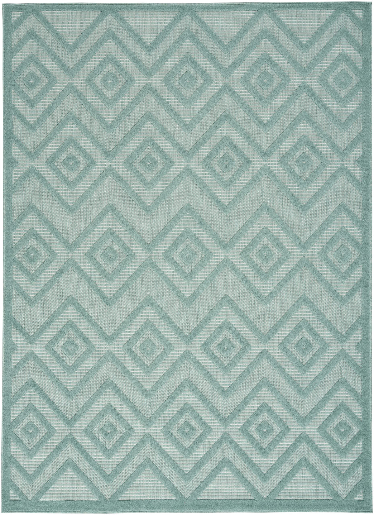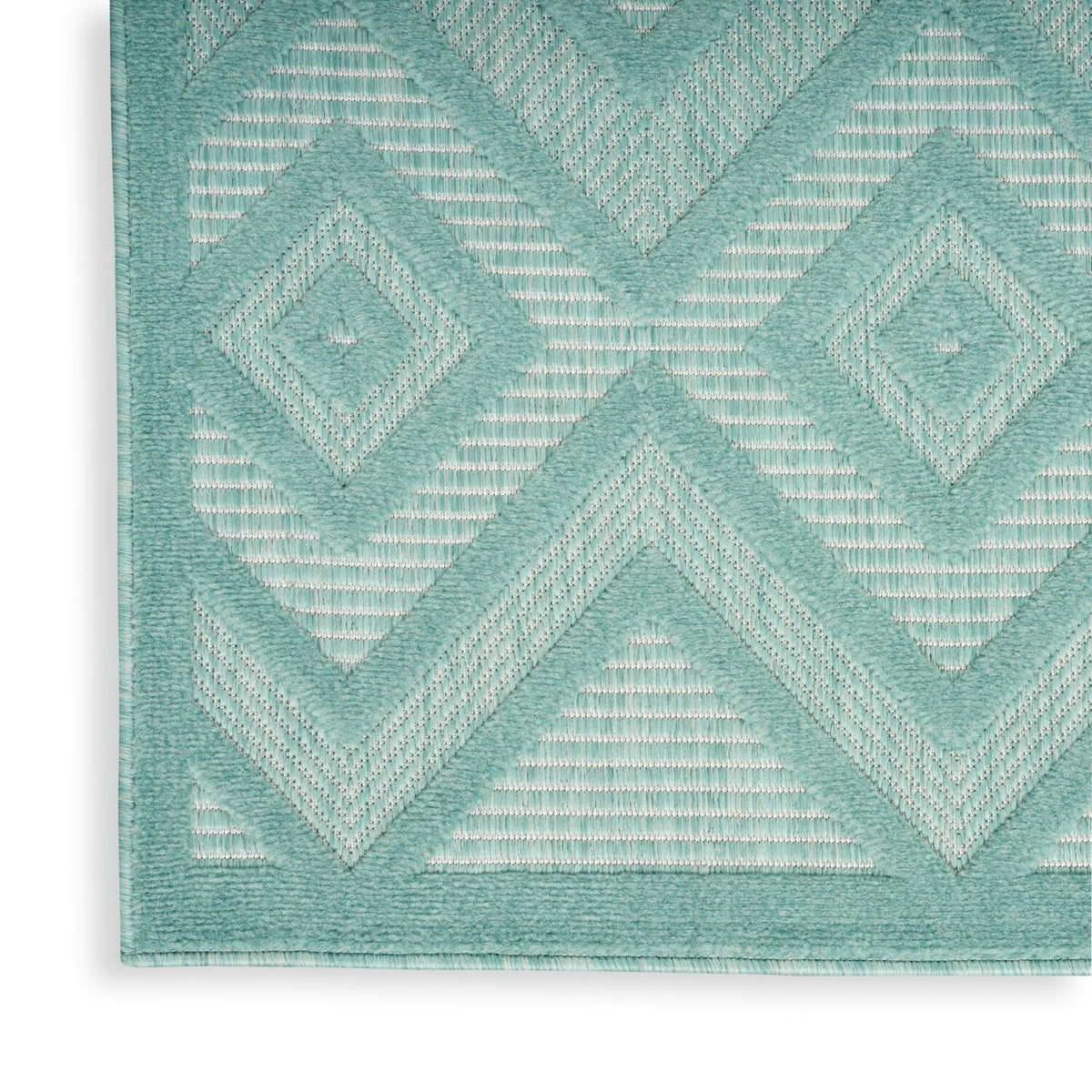 Enhance your indoor or outdoor space with the contemporary appeal of an outdoor rug from the Nourison Versatile Collection. These dynamically textured rugs feature a flatwoven ground with raised designs that feel incredibly soft to the touch, adding an instant layer of depth to just about any space – from living room and dining room to patio, porch, or deck. Machine-made from a blend of durable polypropylene and polyester fibers that are easy to clean: just hose rinse and air dry. This aqua blue and teal Nourison Versatile Collection rug brings inviting style to your favorite indoor or outdoor space. With a raised diamond design in that stands out beautifully against its flatwoven ground, this outdoor rug enhances your space with delightful texture and modern appeal. Machine-made from durable, easy-to-clean fibers, Versatile is great for high-traffic areas inside the home as well as all seasons spent outdoors.
