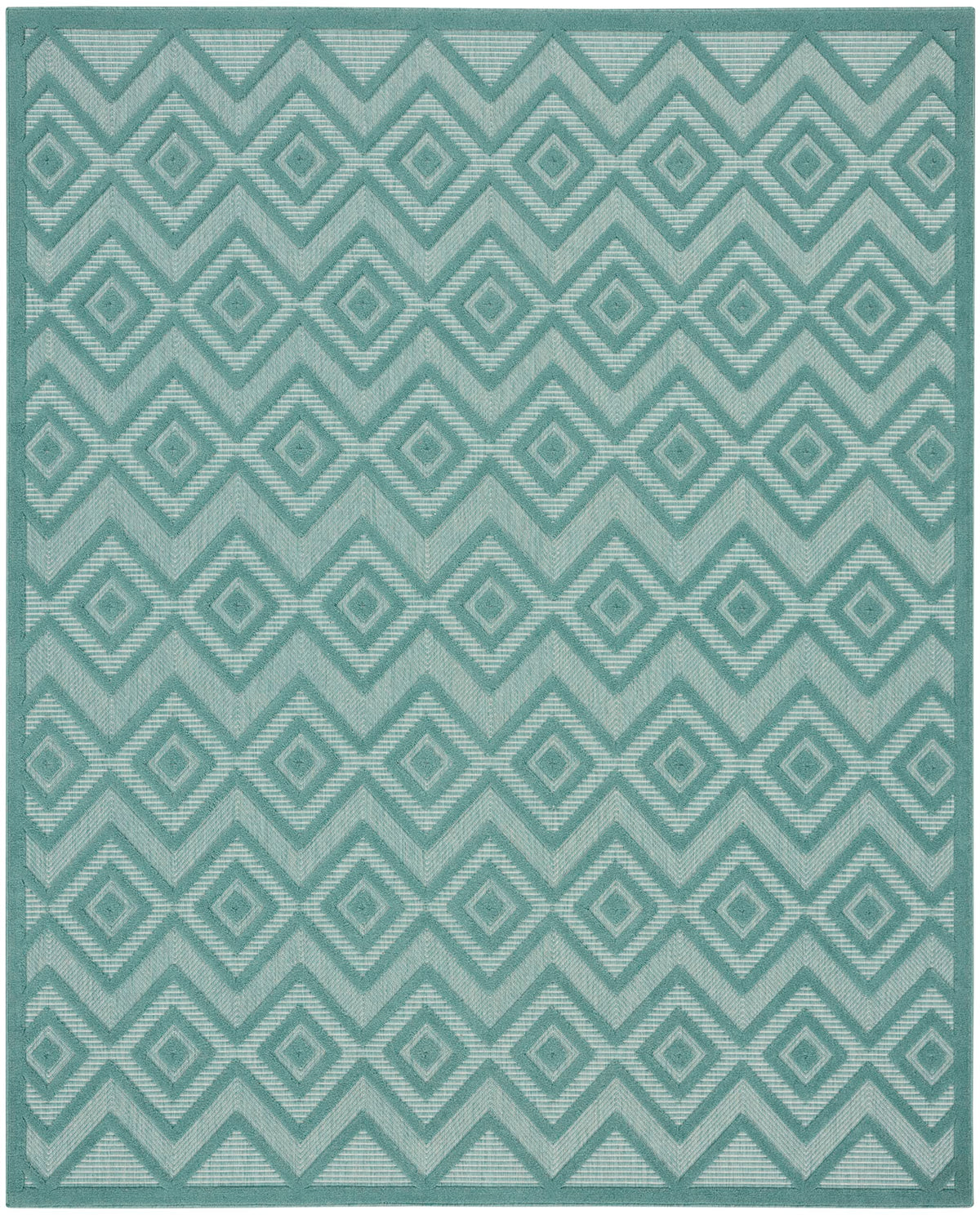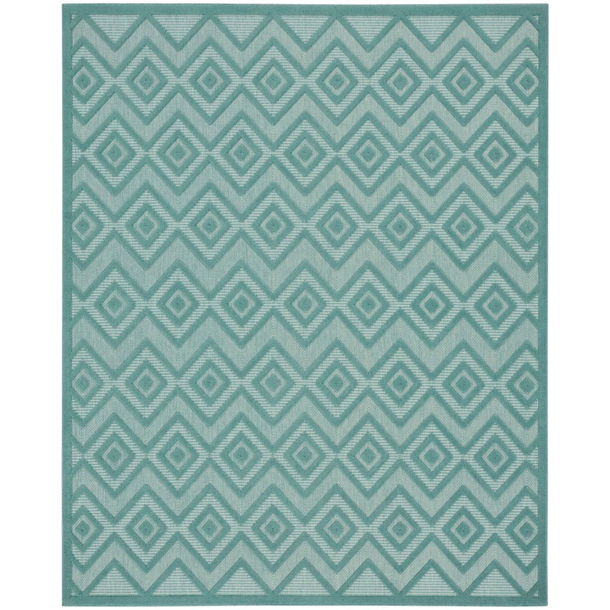 Enhance your indoor or outdoor space with the contemporary appeal of an outdoor rug from the Nourison Versatile Collection. These dynamically textured rugs feature a flatwoven ground with raised designs that feel incredibly soft to the touch, adding an instant layer of depth to just about any space – from living room and dining room to patio, porch, or deck. Machine-made from a blend of durable polypropylene and polyester fibers that are easy to clean: just hose rinse and air dry. This aqua blue and teal Nourison Versatile Collection rug brings inviting style to your favorite indoor or outdoor space. With a raised diamond design in that stands out beautifully against its flatwoven ground, this outdoor rug enhances your space with delightful texture and modern appeal. Machine-made from durable, easy-to-clean fibers, Versatile is great for high-traffic areas inside the home as well as all seasons spent outdoors.